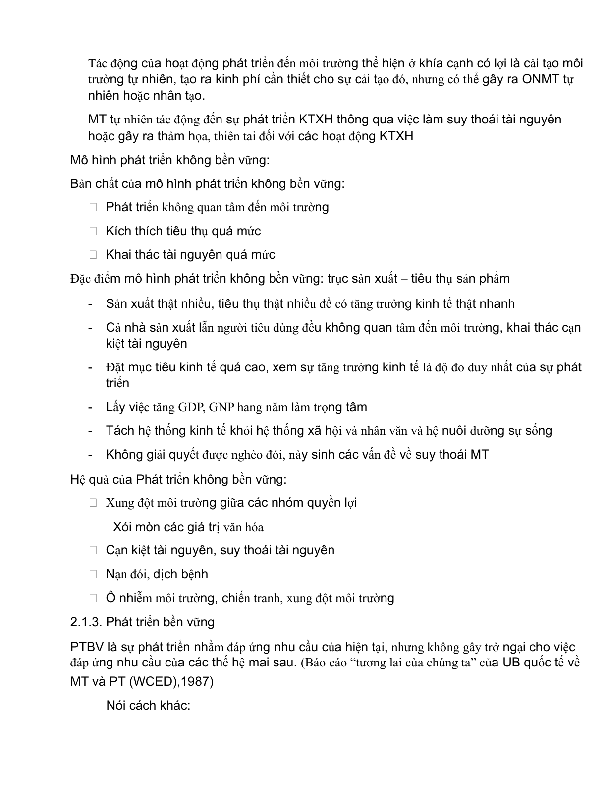 hạn chế tác động có hại của phát triển kinh tế xã hội đến MT.