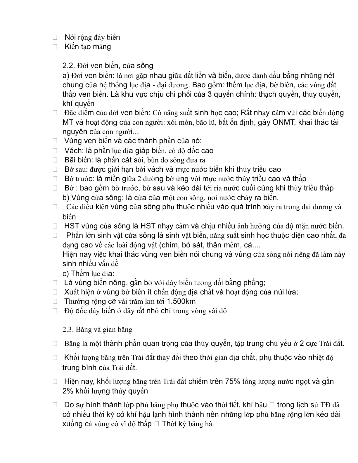 sinh đới thủy vực nước ngọt, thềm lục địa, đáy biển,…