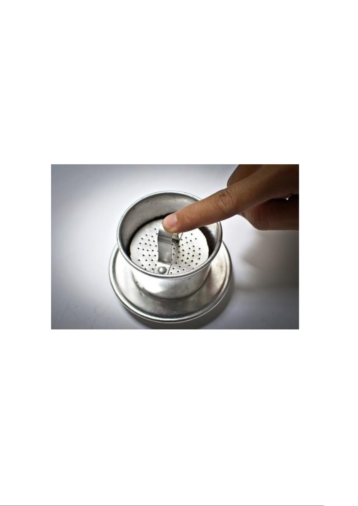 Bước 1: Sau khi tráng phin với nước nóng, bạn cho vào 100gr cafe và ấn nhẹ nắp gài. •