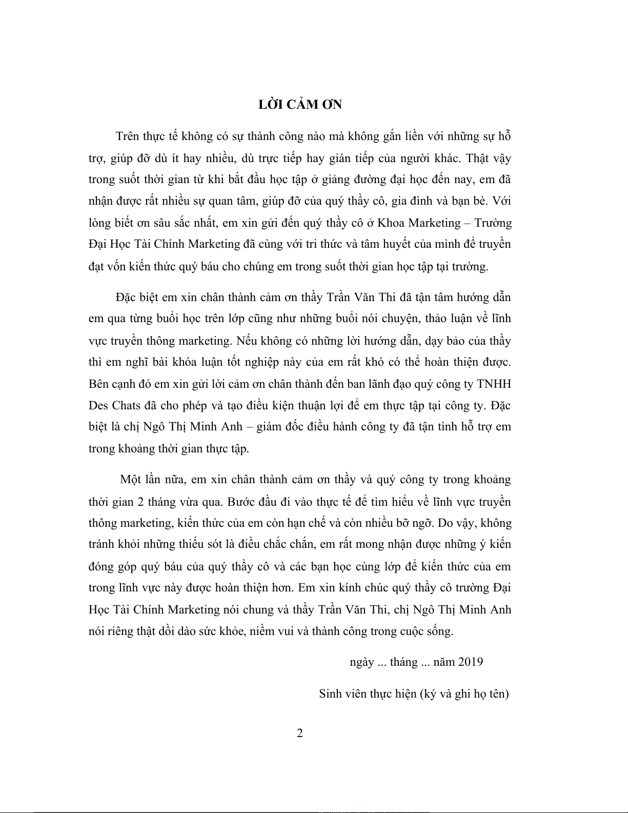Học Tài Chính Marketing nói chung và thầy Trần Văn Thi, chị Ngô Thị Minh Anh