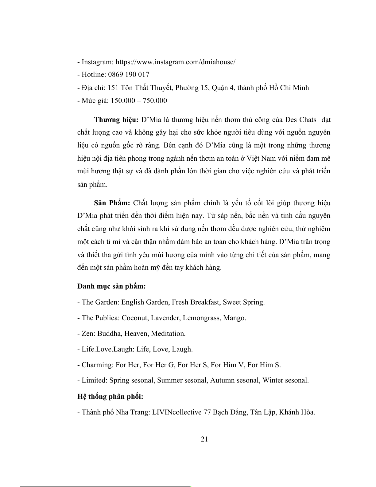 Chats đã phát triển thương hiệu nến thơm D’Mia cho hoạt động phát triển kinh doanh của mình.