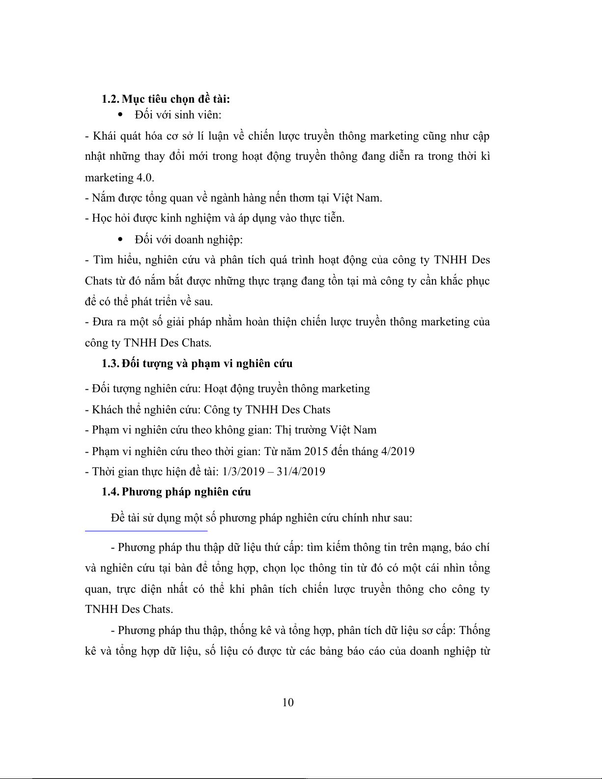 - Khách thể nghiên cứu: Công ty TNHH Des Chats