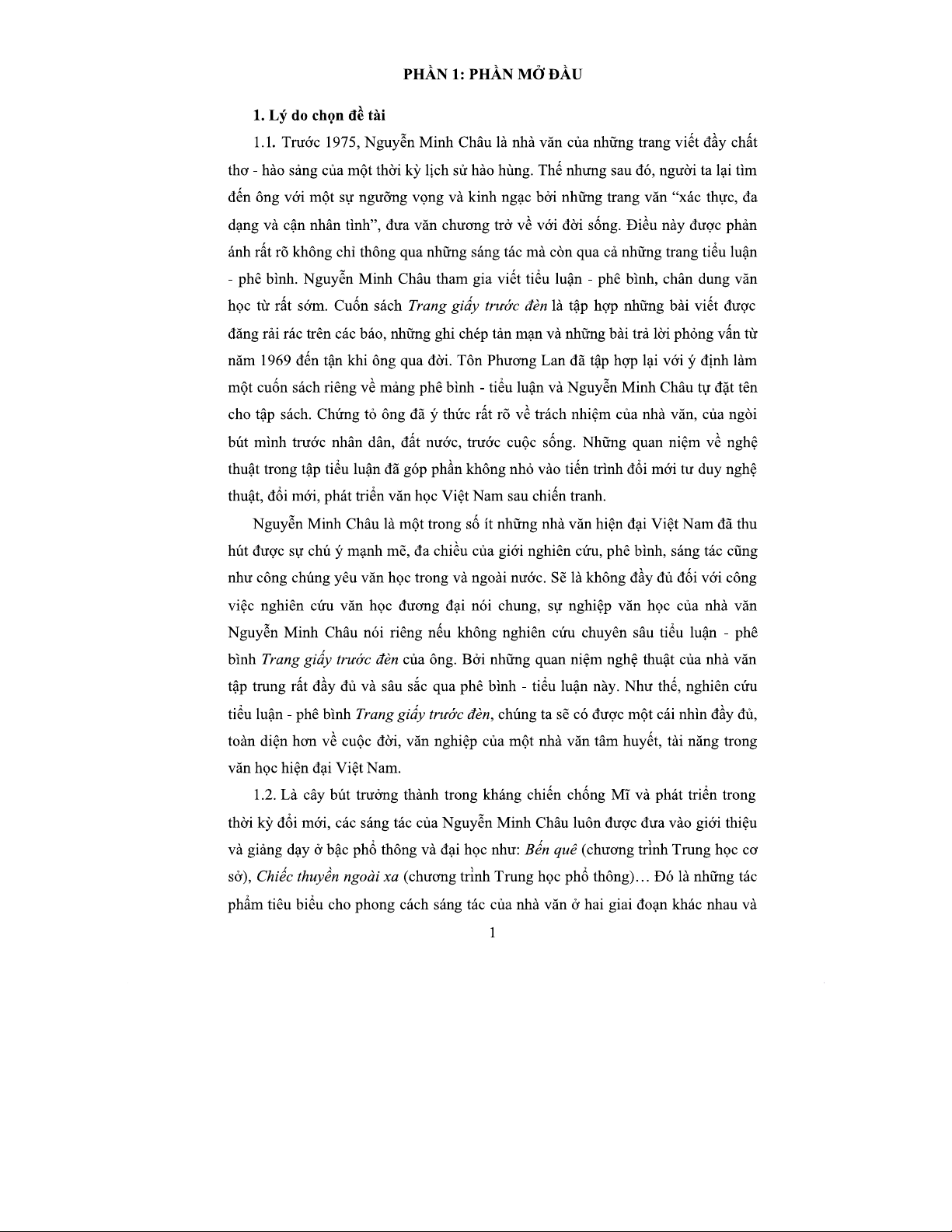 Khóa Luận: Quan Điểm Nghệ Thuật của Nguyễn Minh Châu