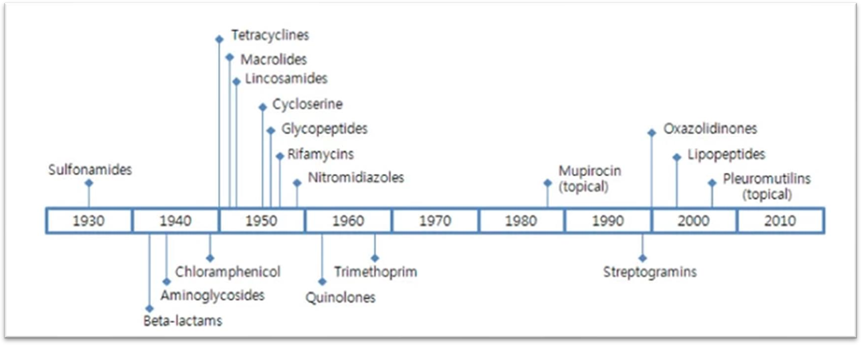 Ảnh 1.1. Lịch sử phát triển của các loại thuốc kháng sinh