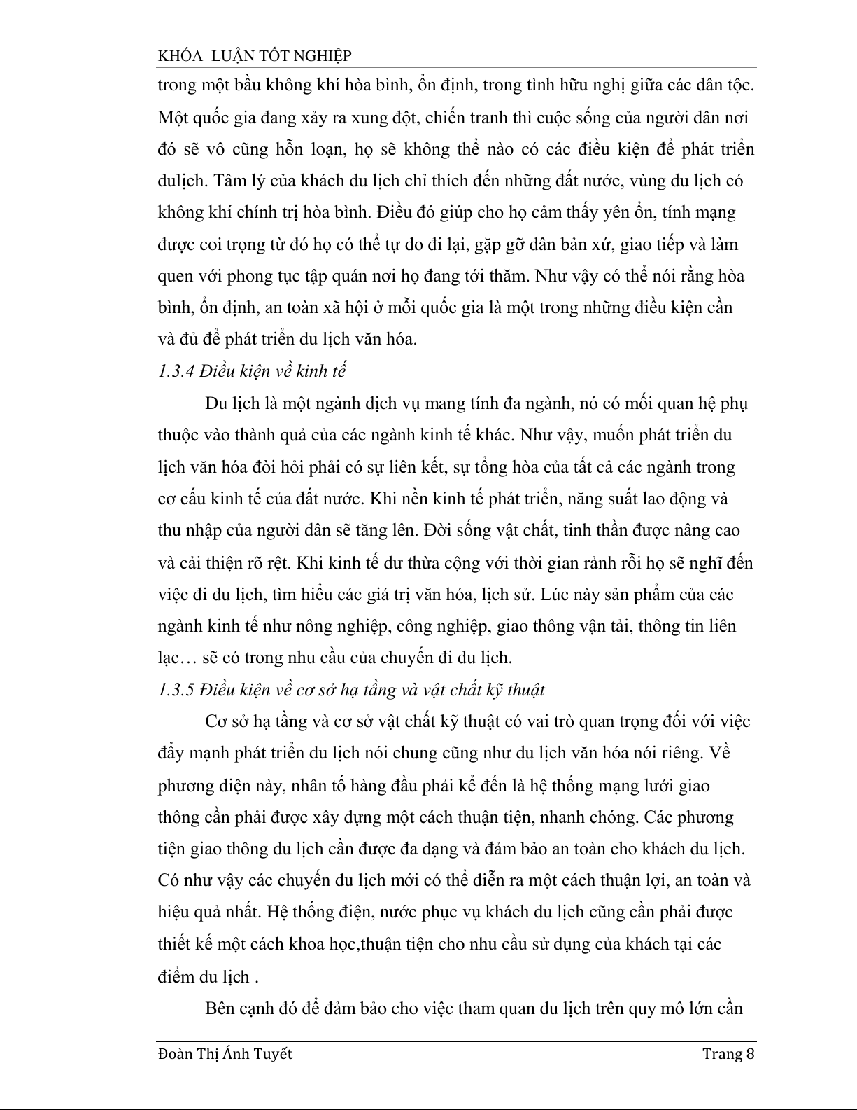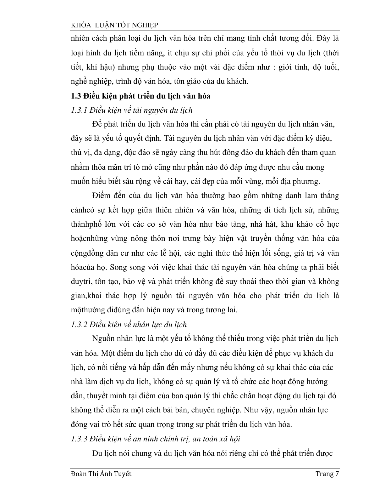 Du lịch nói chung và du lịch văn hóa nói riêng chỉ có thể phát triển được Đoàn Thị Ánh Tuyết Trang 7 KHÓA LUẬN TỐT NGHIỆP