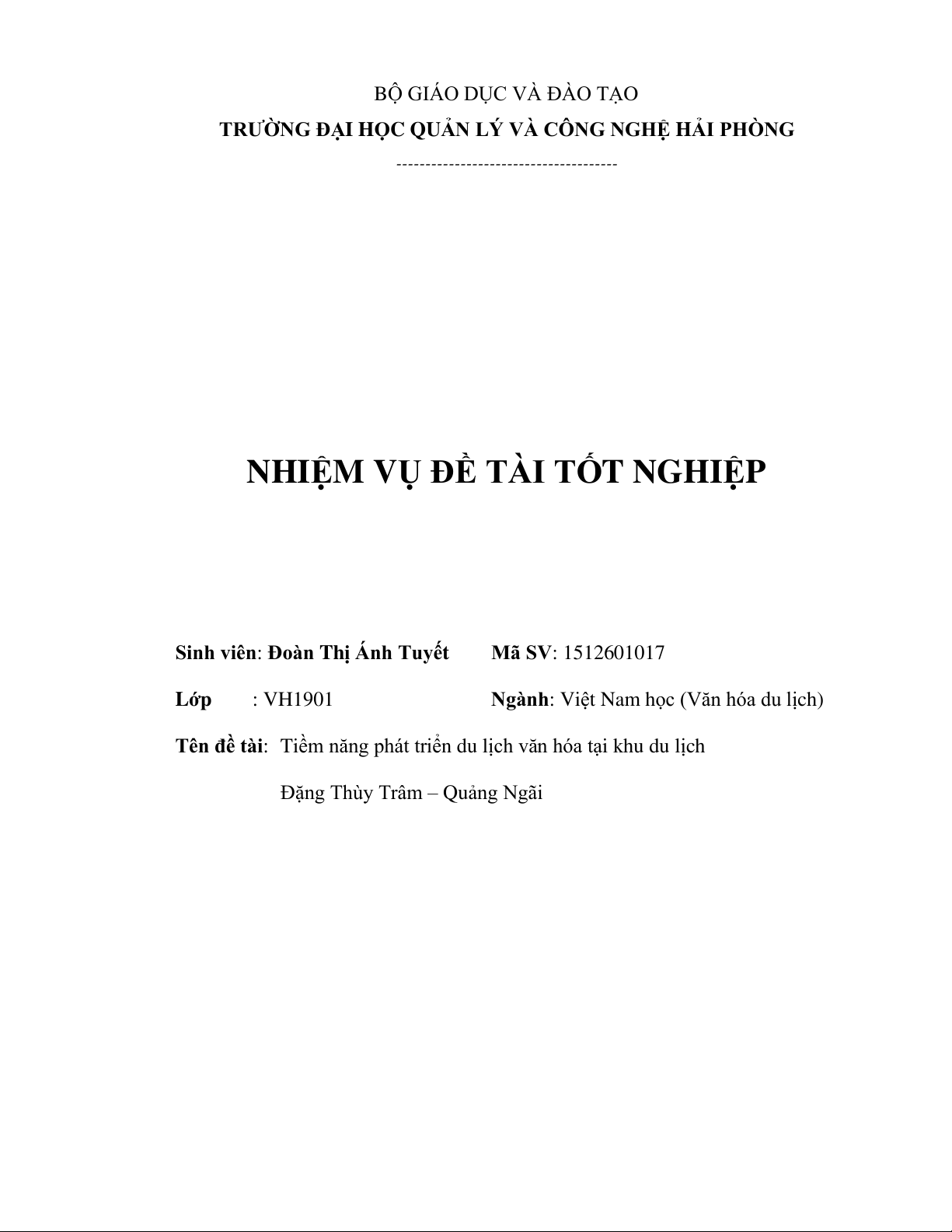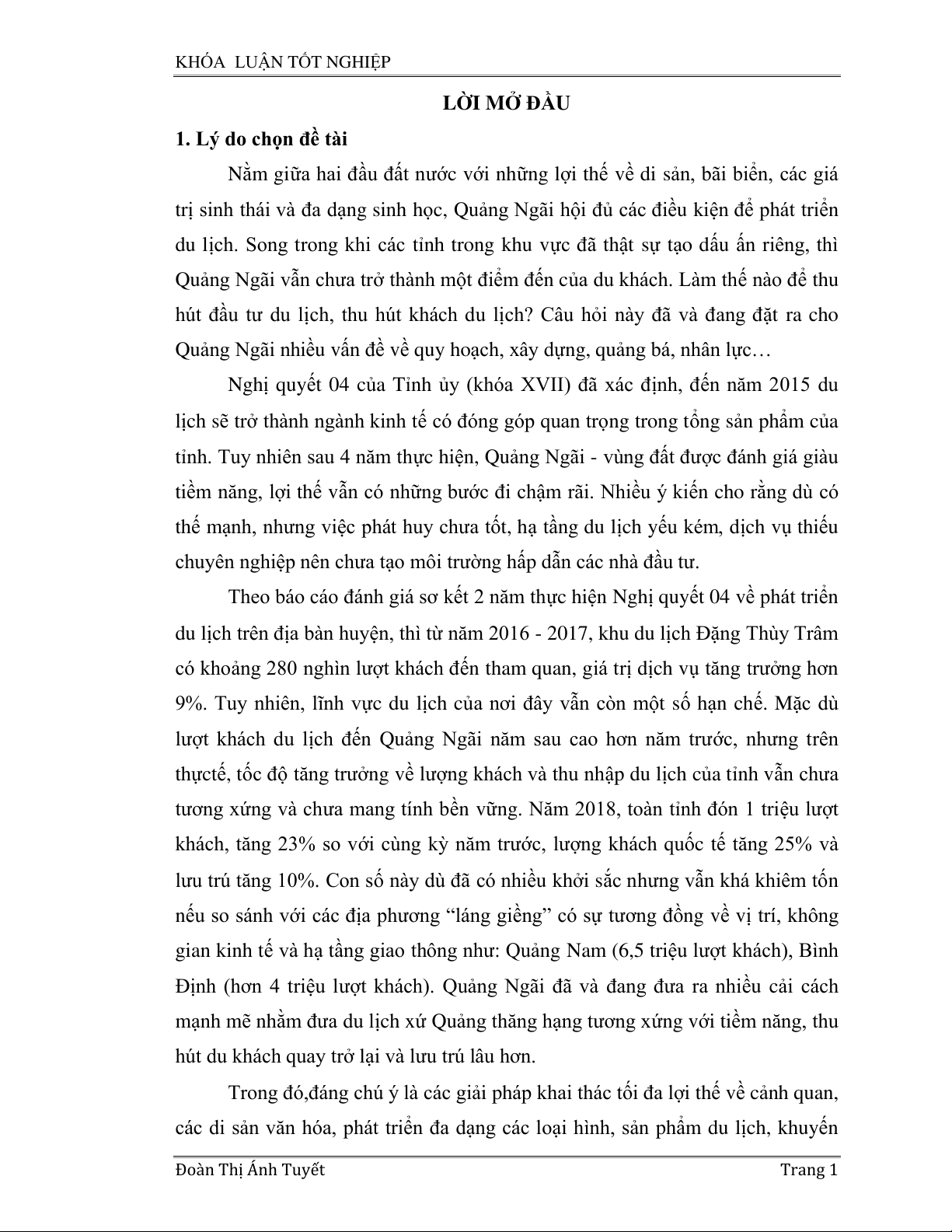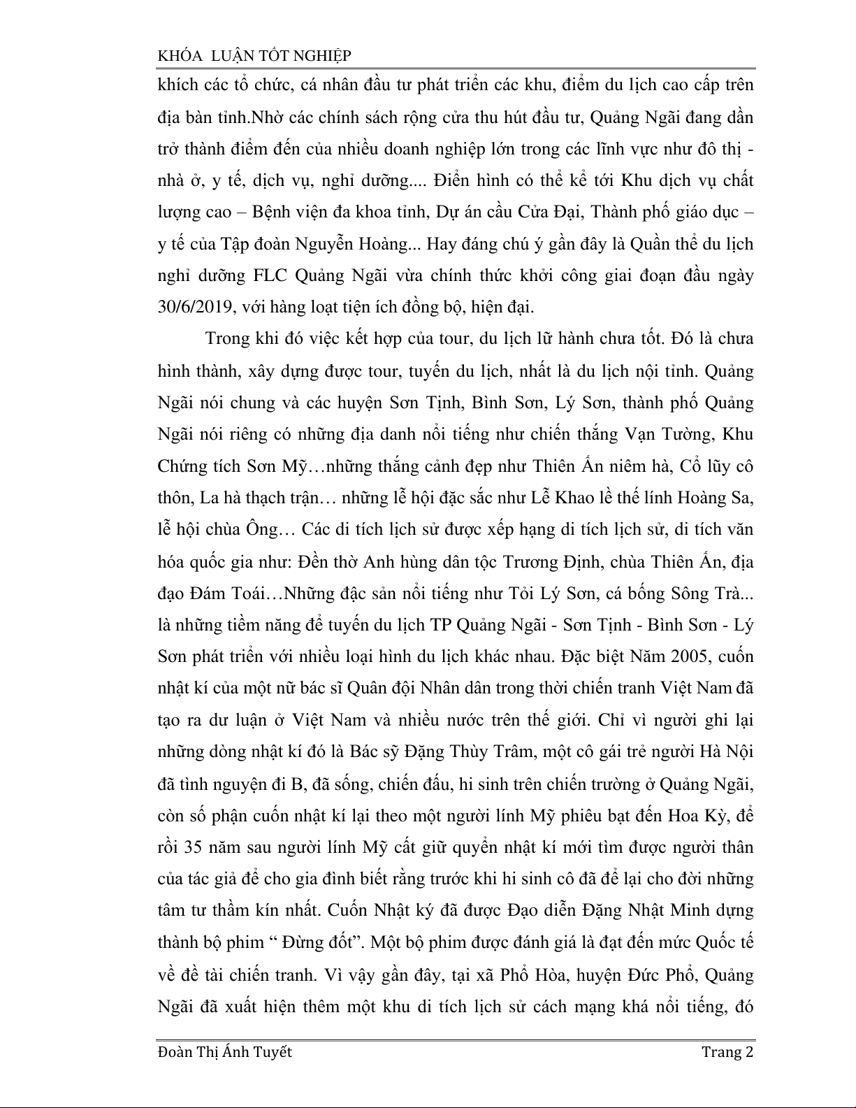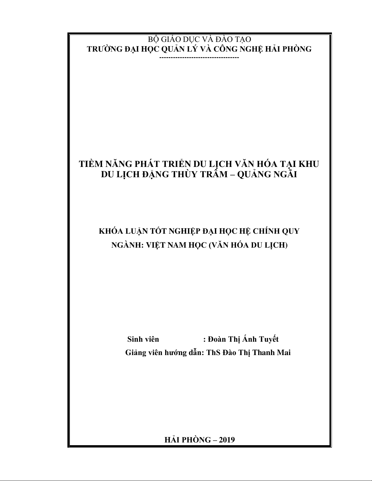 - Tìm hiểu tiềm năng phát triển du lịch văn hóa tại khu du lịch Đặng Thùy Trâm tỉnh Quảng Ngãi