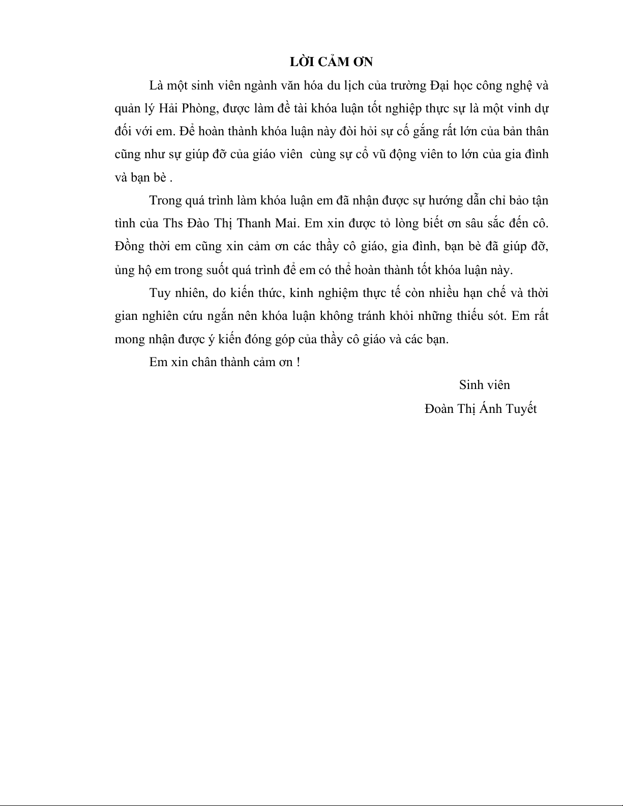 Đoàn Thị Ánh TuyếtChuyên ngành: Văn hóa du lịch Đề tài ố t t nghiệp:
