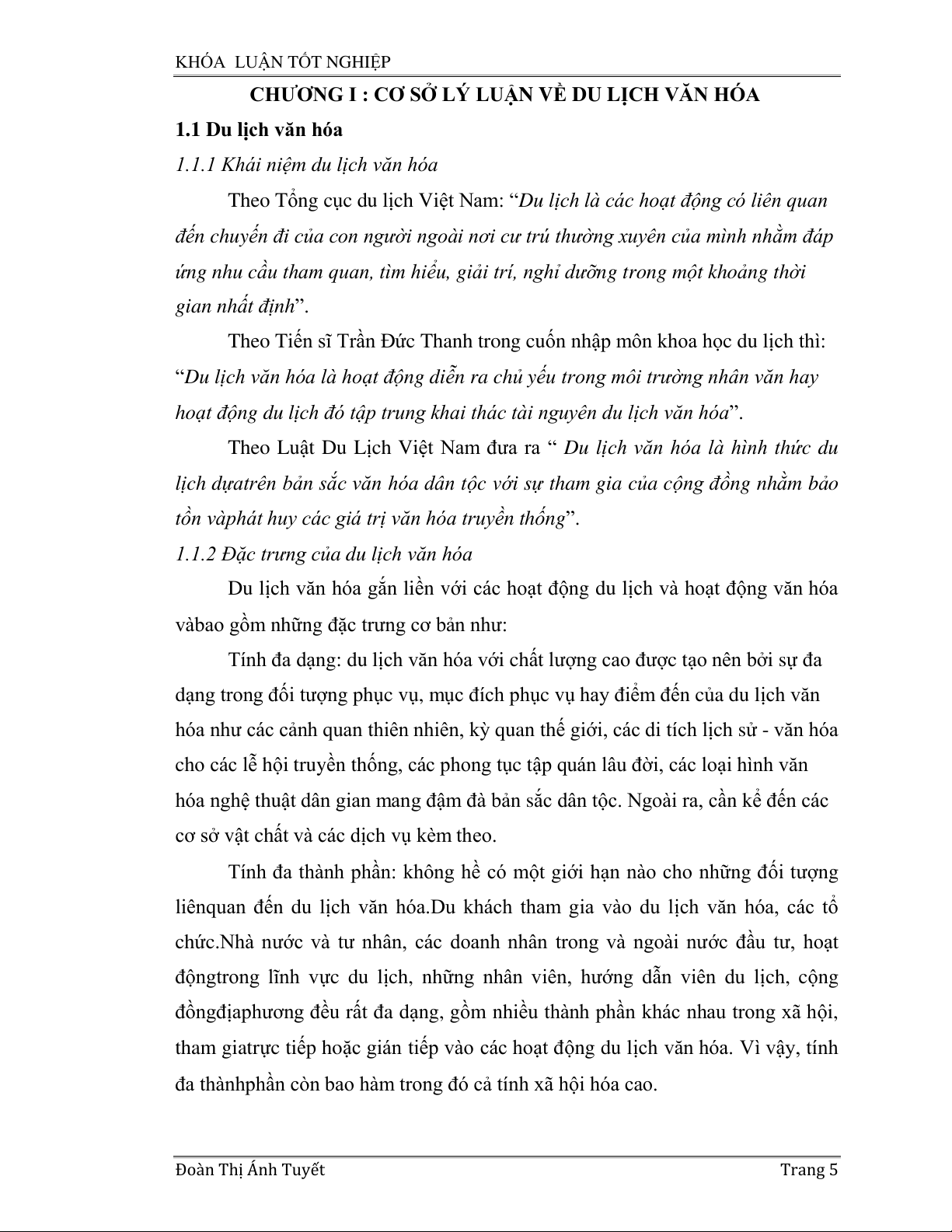 CHƯƠNG I : CƠ SỞ LÝ LUẬN VỀ DU LỊCH VĂN HÓA . . . . . . . . . . . . . . 5