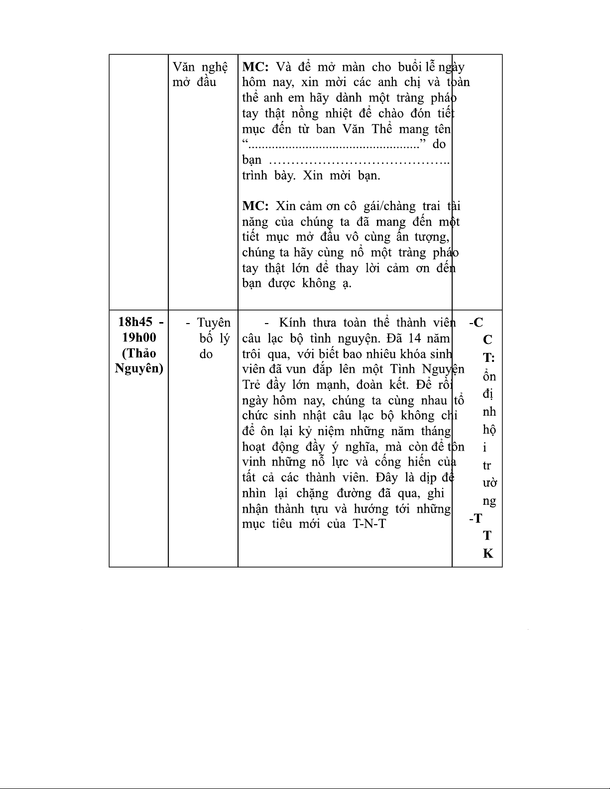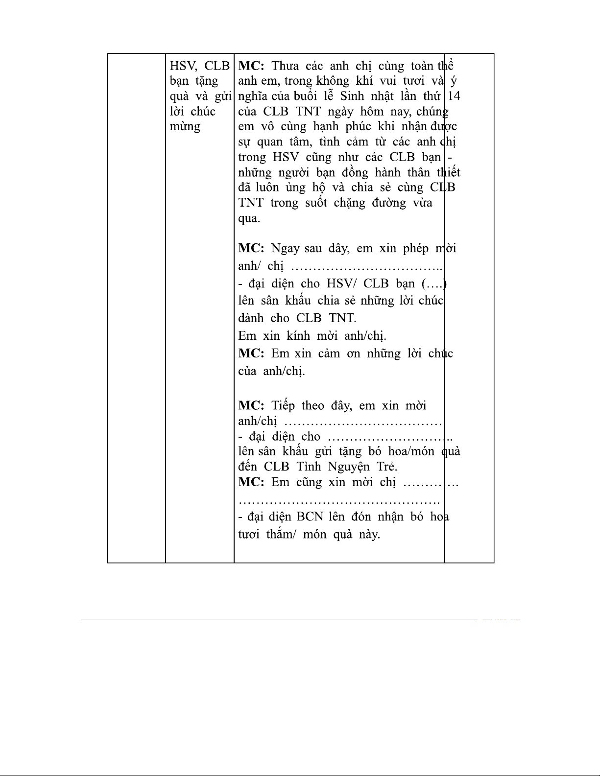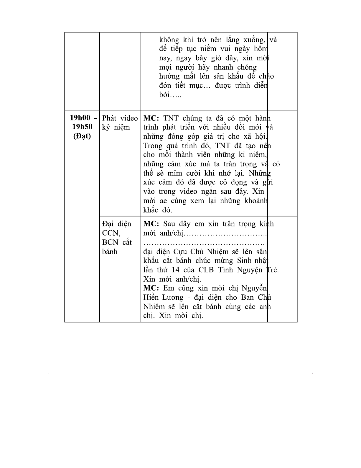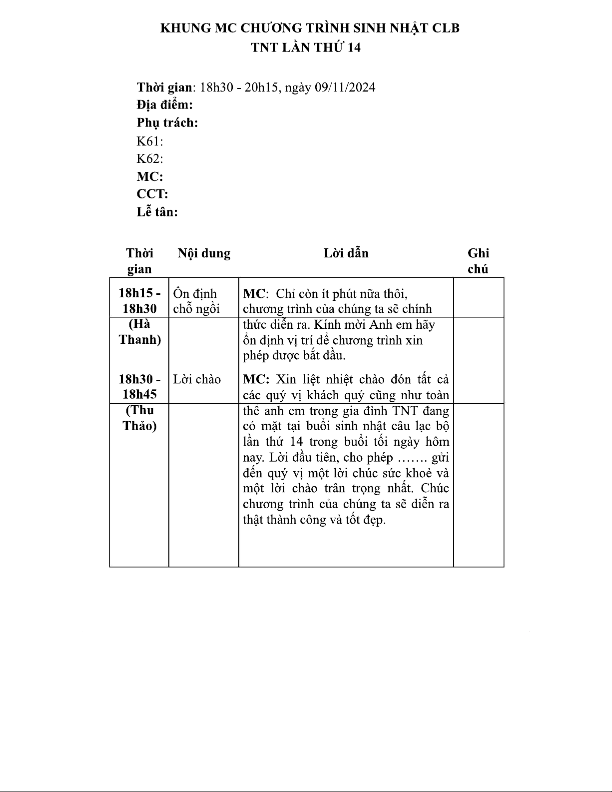 Khung MC Chương Trình Sinh Nhật CLB TNT Lần Thứ 14