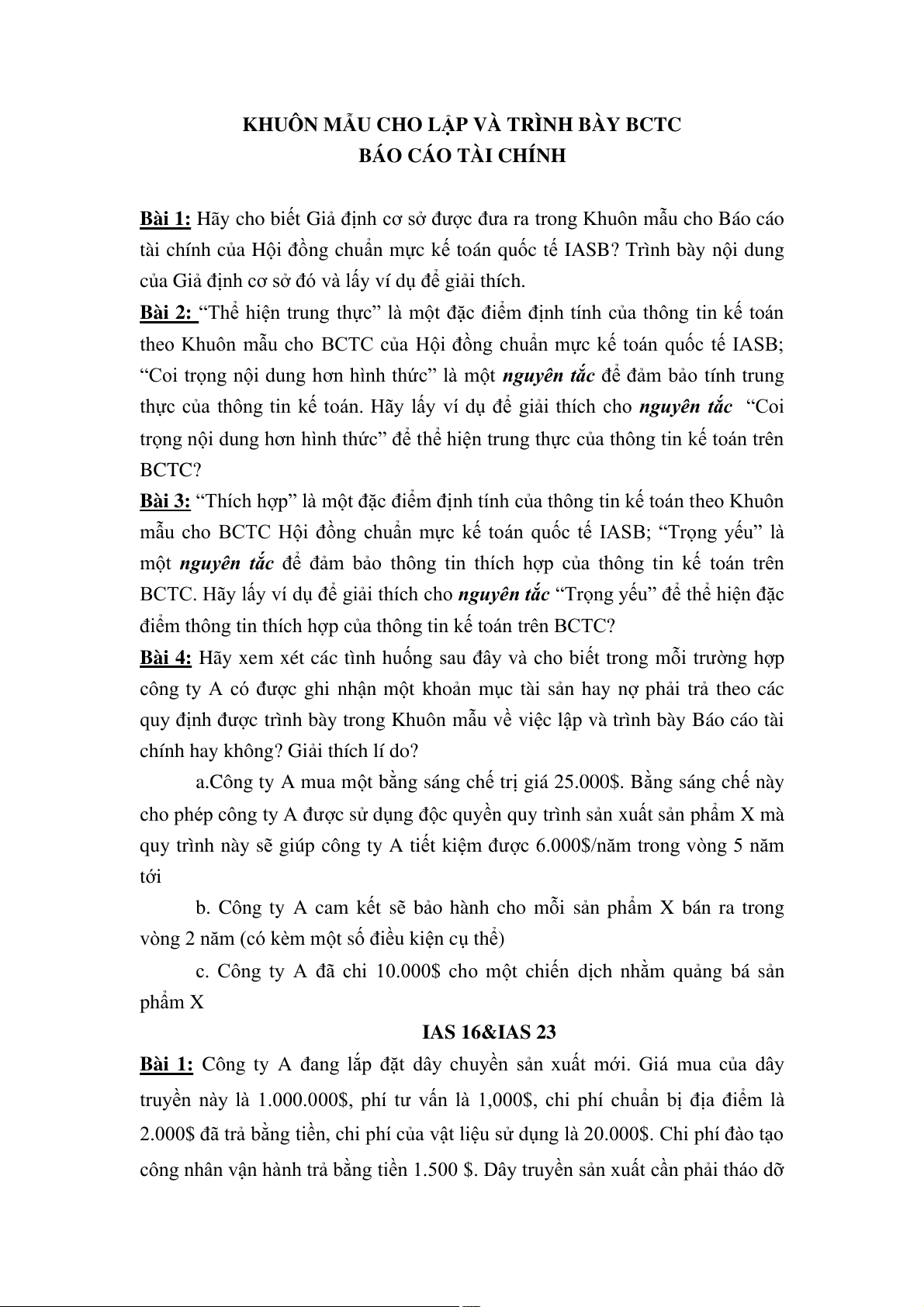 Bài 1: Hãy cho biết Giả định cơ sở được đưa ra trong Khuôn mẫu cho Báo cáo