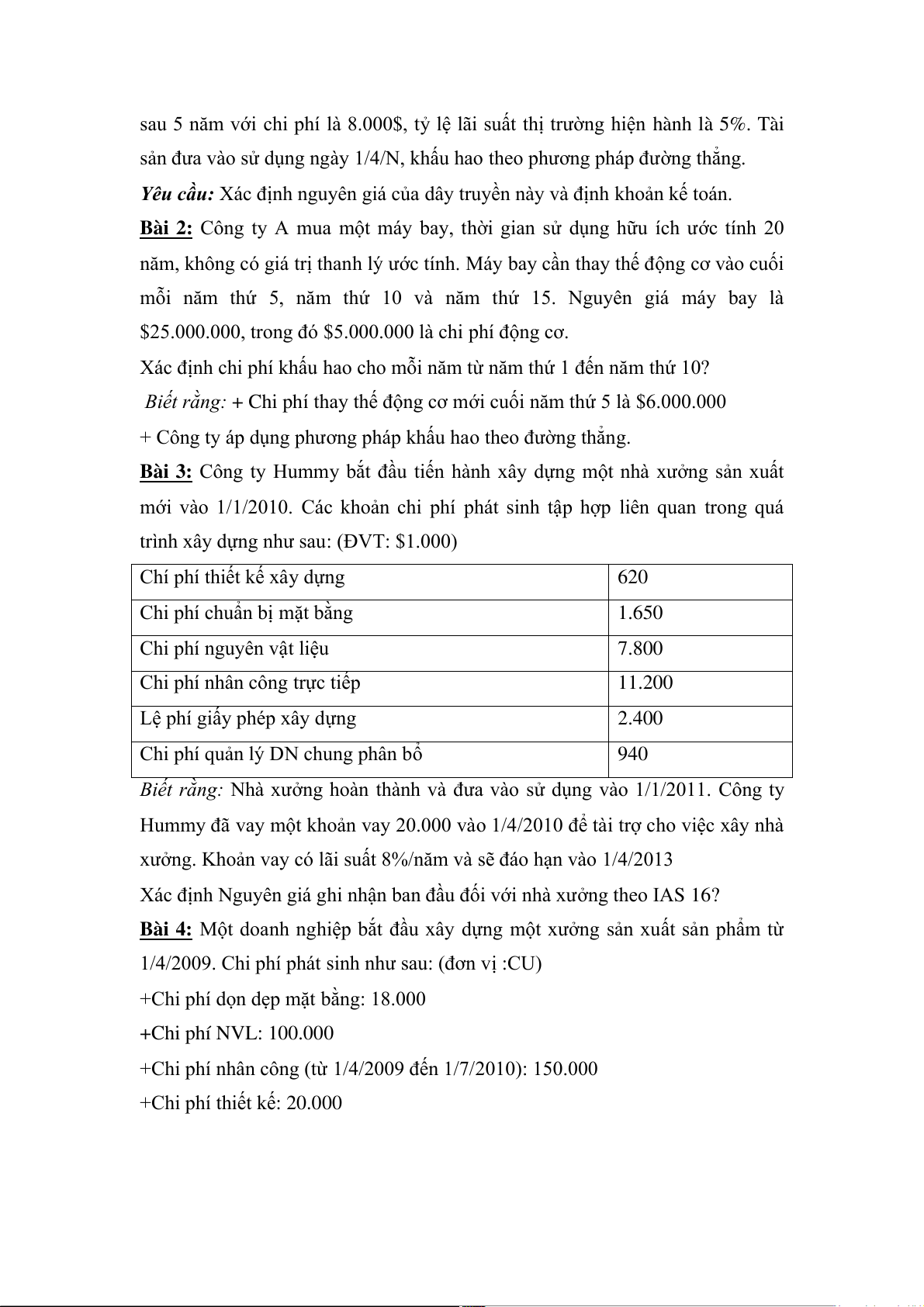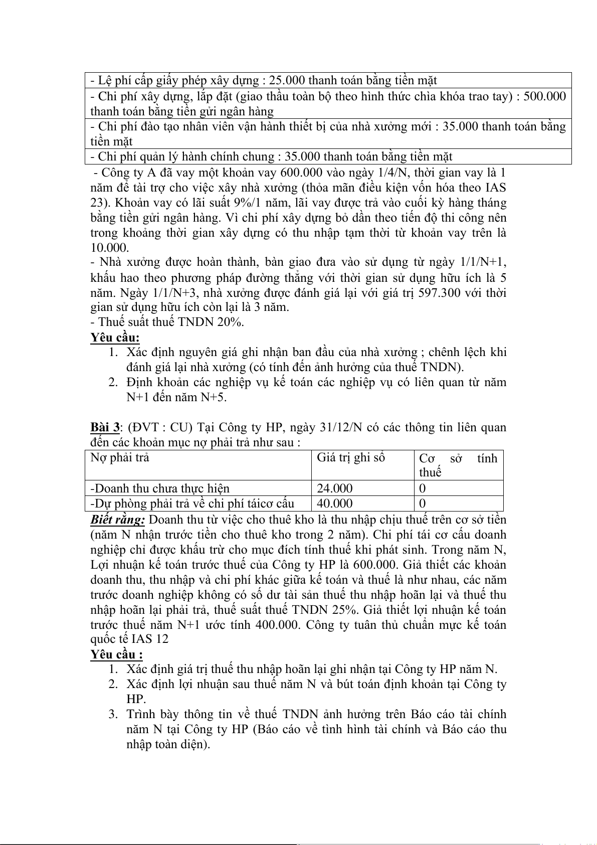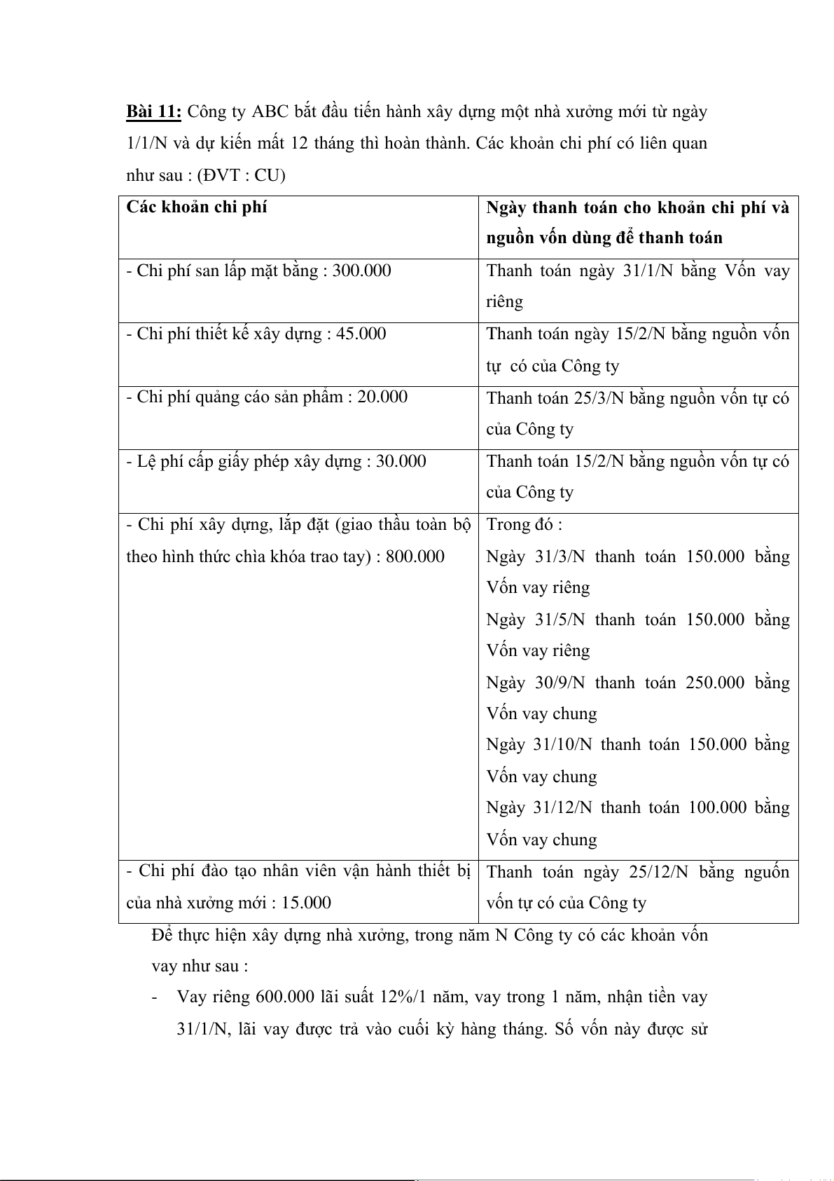 Câu 2: (ĐVT : CU) Công ty A bắt đầu tiến hành xây dựng một nhà xưởng mới