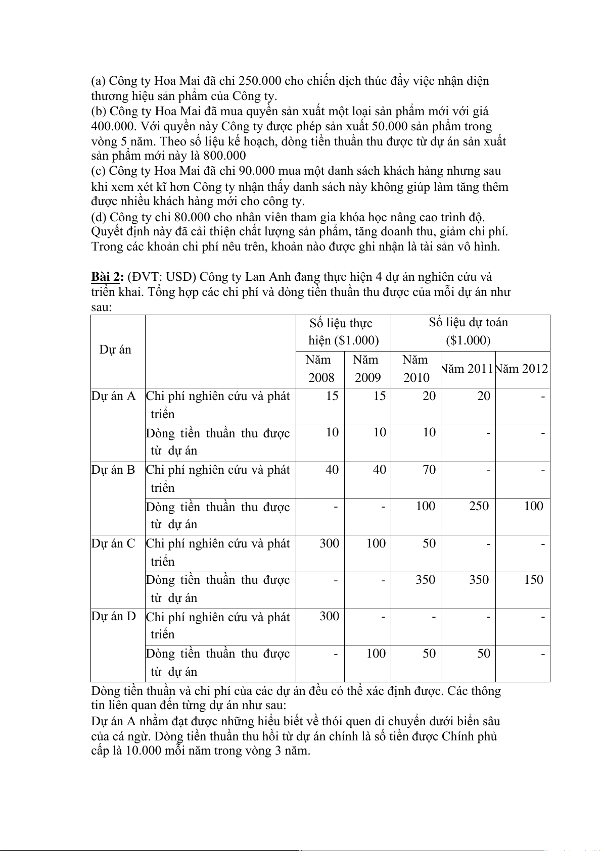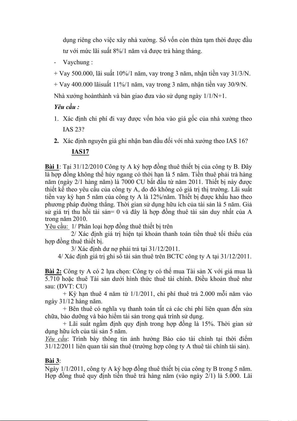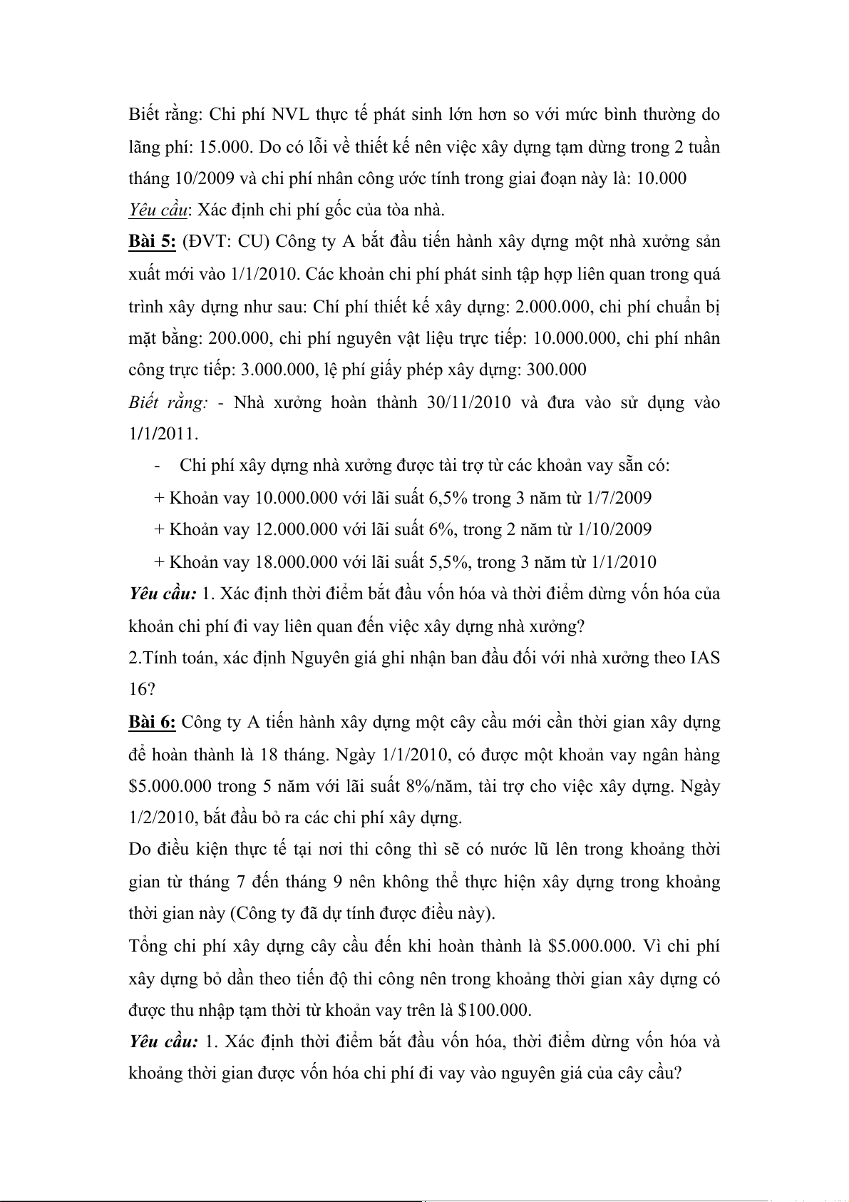 Câu 2: (ĐVT : CU) Công ty A bắt đầu tiến hành xây dựng một nhà xưởng mới