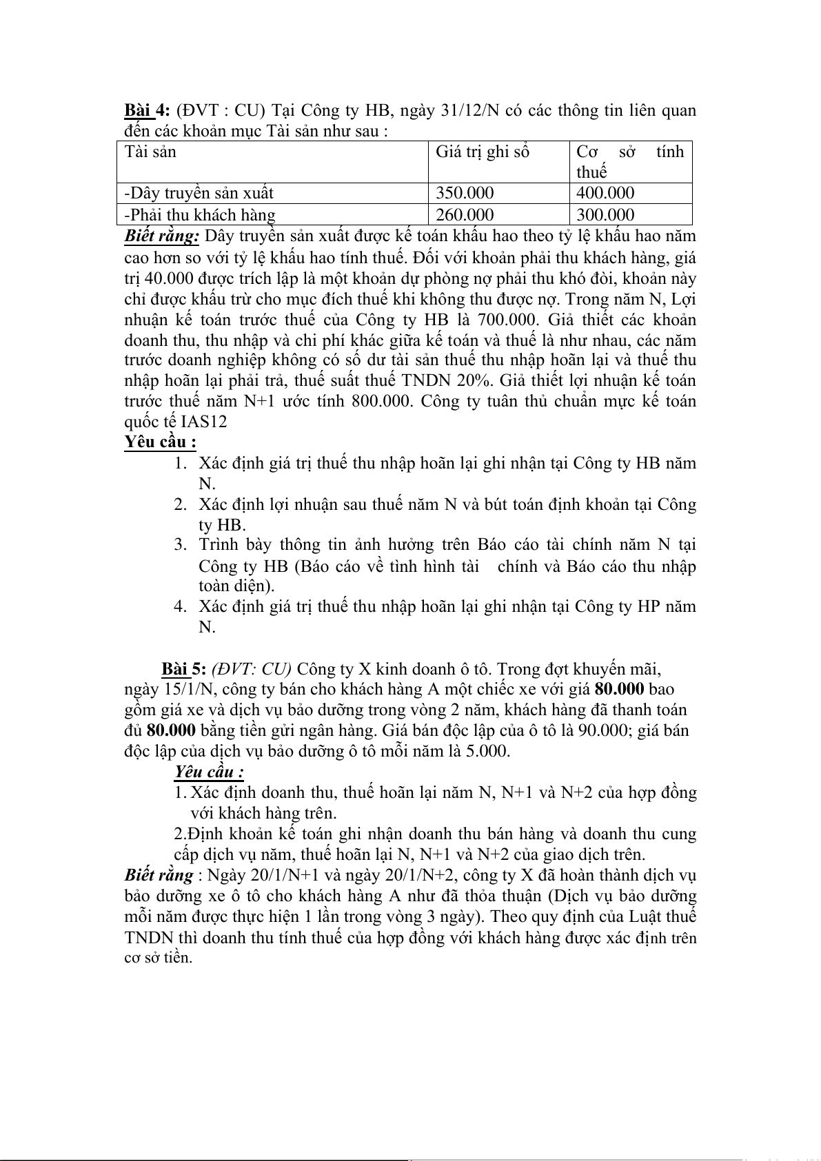 4. Xác định giá trị thuế thu nhập hoãn lại ghi nhận tại Công ty HP năm N.