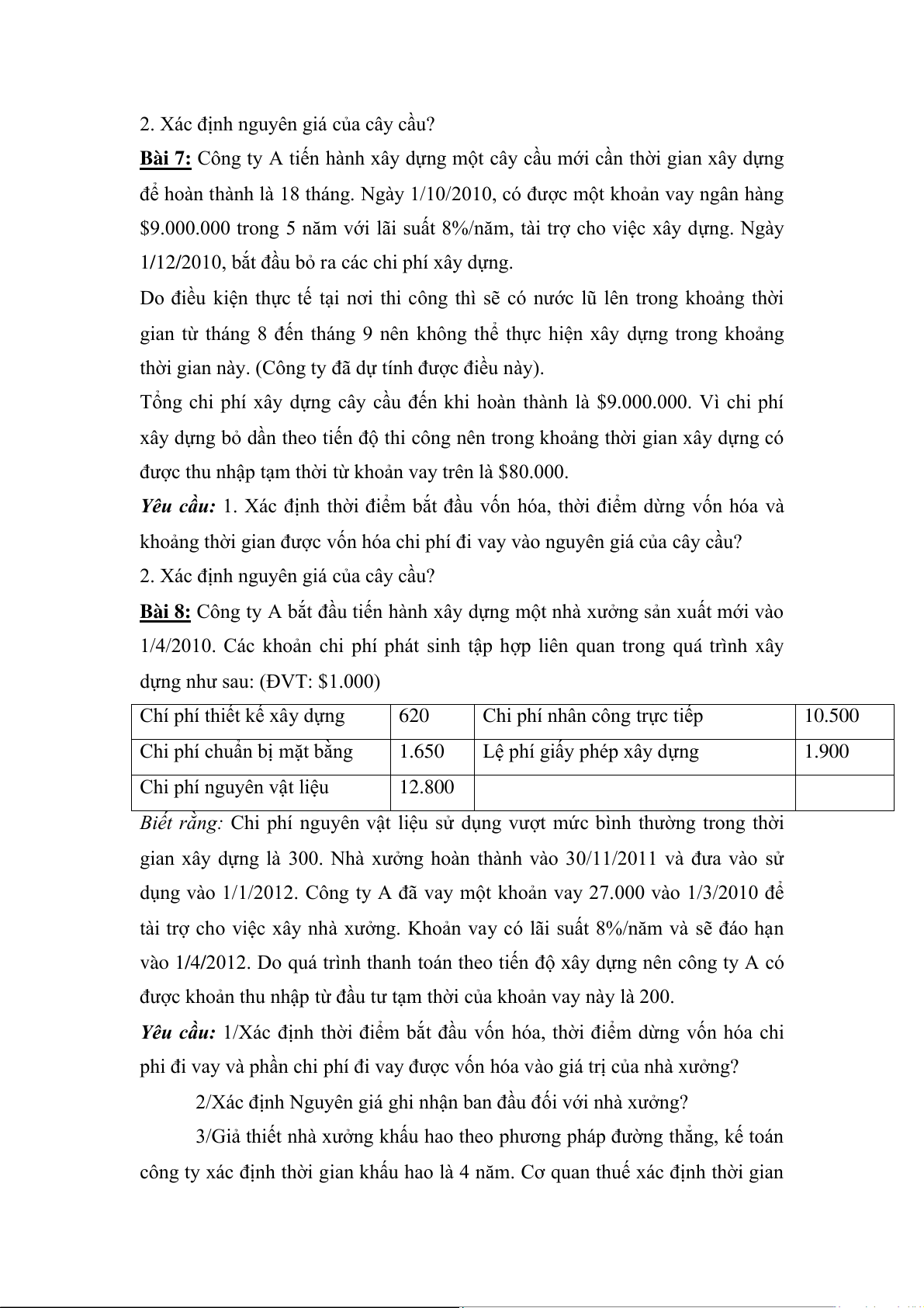 Yêu cầu: 1. Xác định thời điểm bắt đầu vốn hóa, thời điểm dừng vốn hóa và