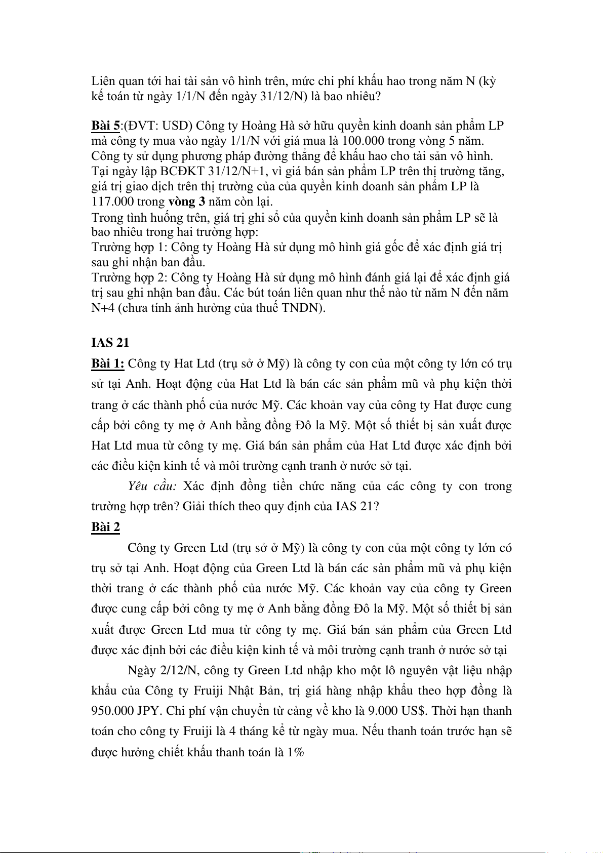 Bài 4: (ĐVT : CU) Tại Công ty HB, ngày 31/12/N có các thông tin liên quan