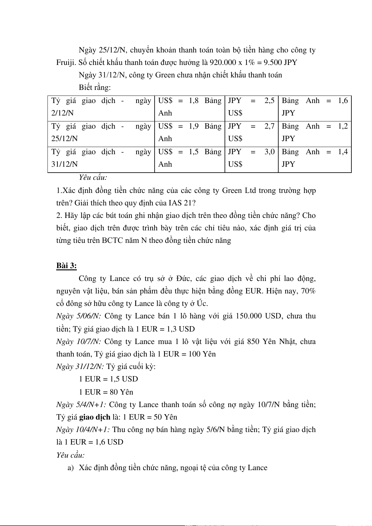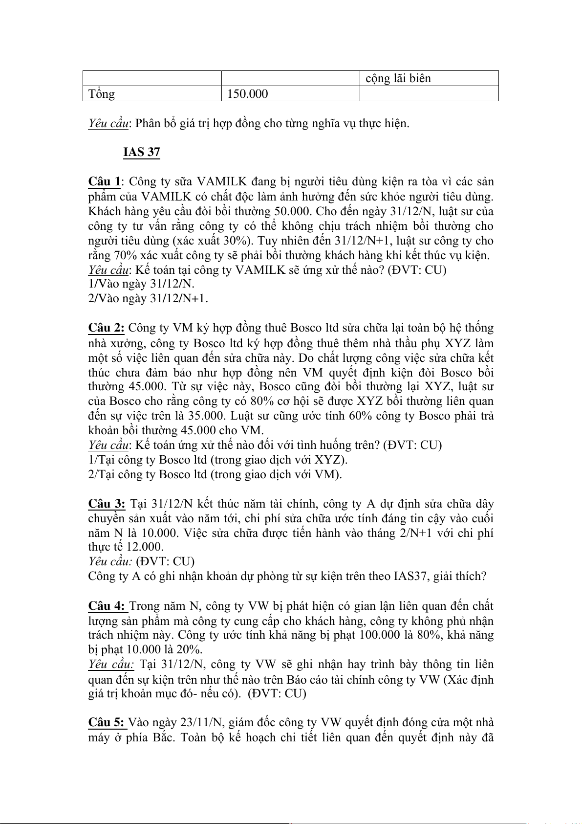 (năm N nhận trước tiền cho thuê kho trong 2 năm). Chi phí tái cơ cấu doanh