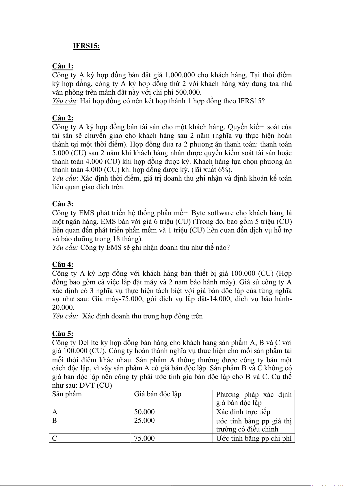 1. Xác định doanh thu, thuế hoãn lại năm N, N+1 và N+2 của hợp đồng với khách hàng trên.