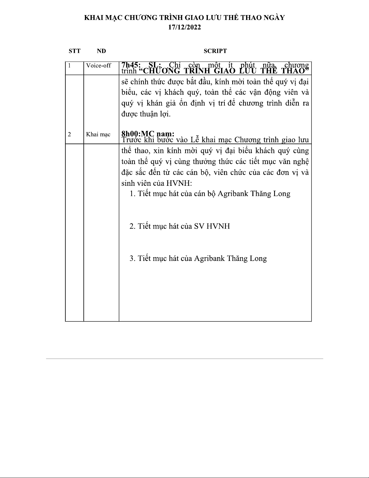 Kịch Bản Khai Mạc và Trao Giải Giải Giao Lưu Thể Thao GLTT 17.12