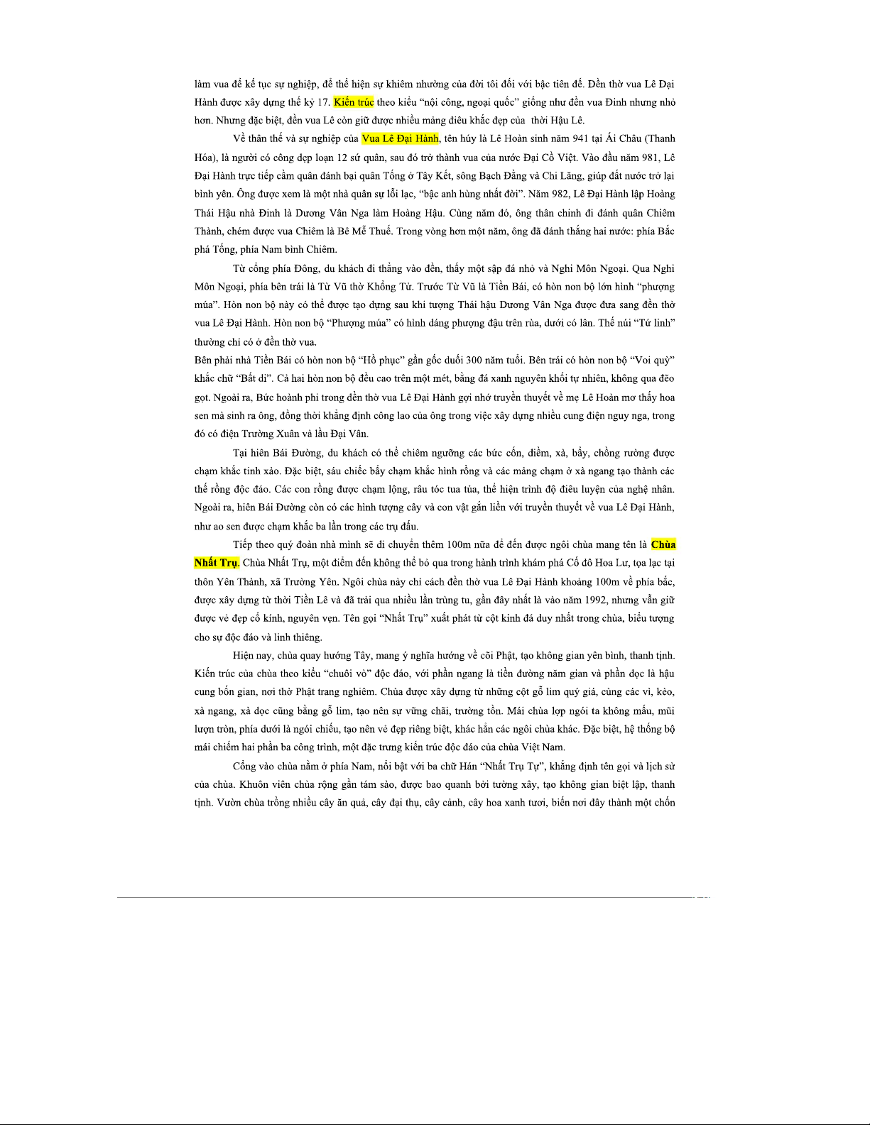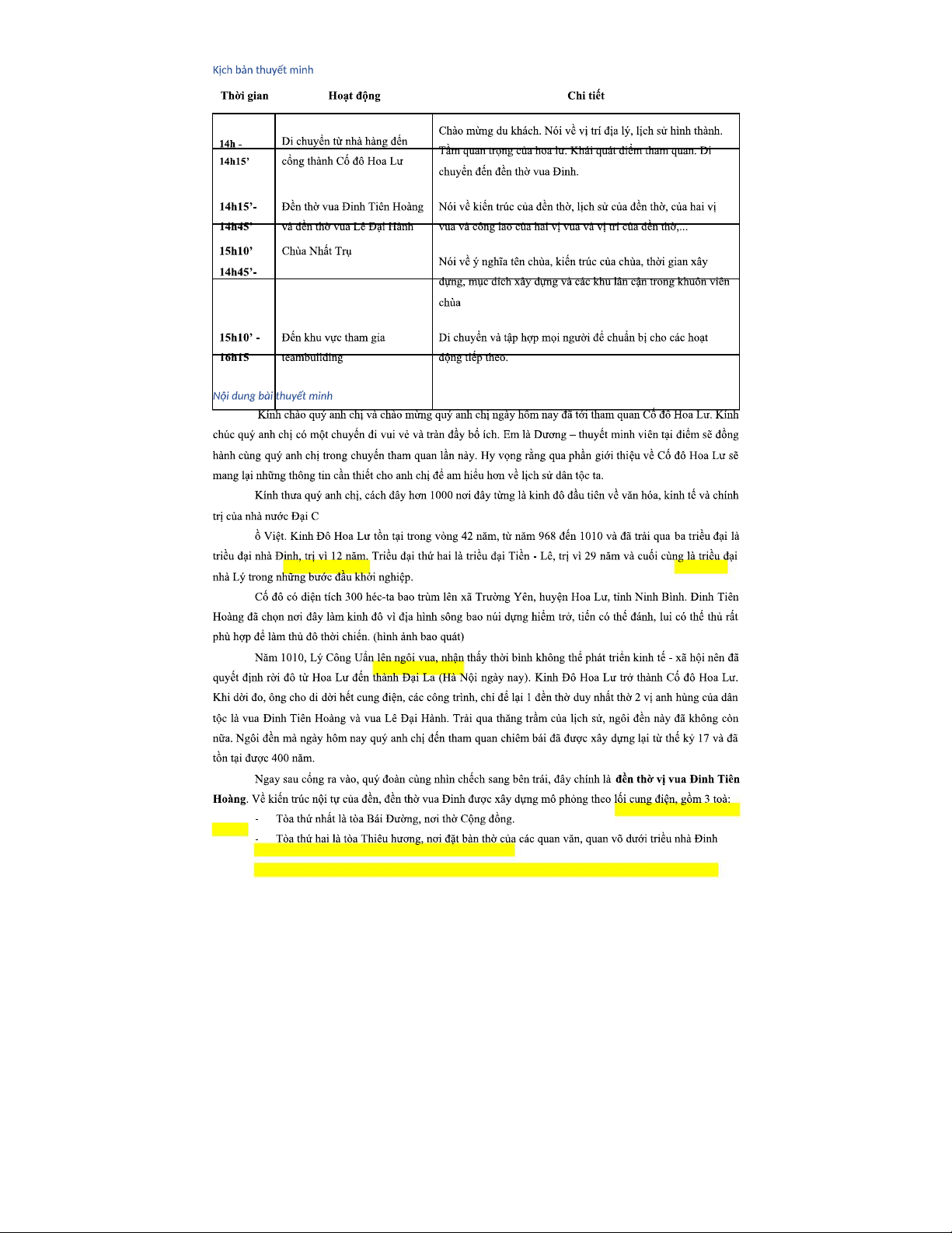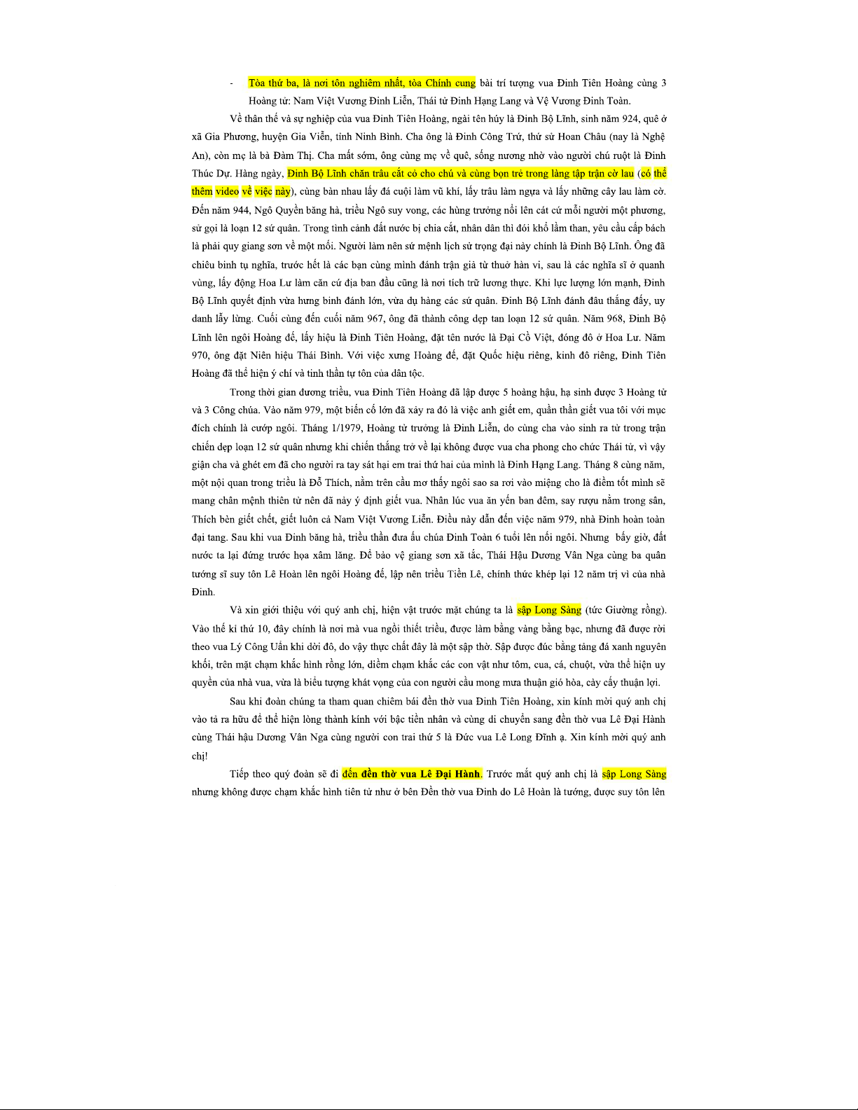 Kịch bản Thuyết minh Chuyến tham quan Cố đô Hoa Lư - Ninh Bình