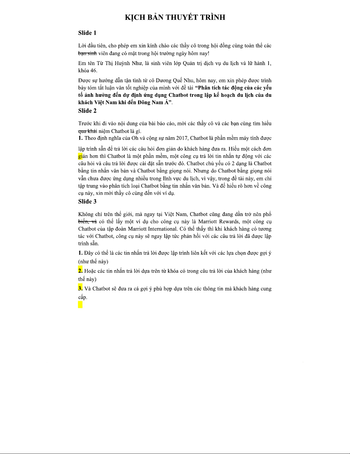 Kịch Bản Thuyết Trình Luận Văn Tốt Nghiệp: Chatbot Trong Du Lịch