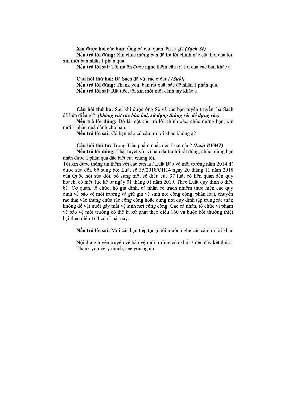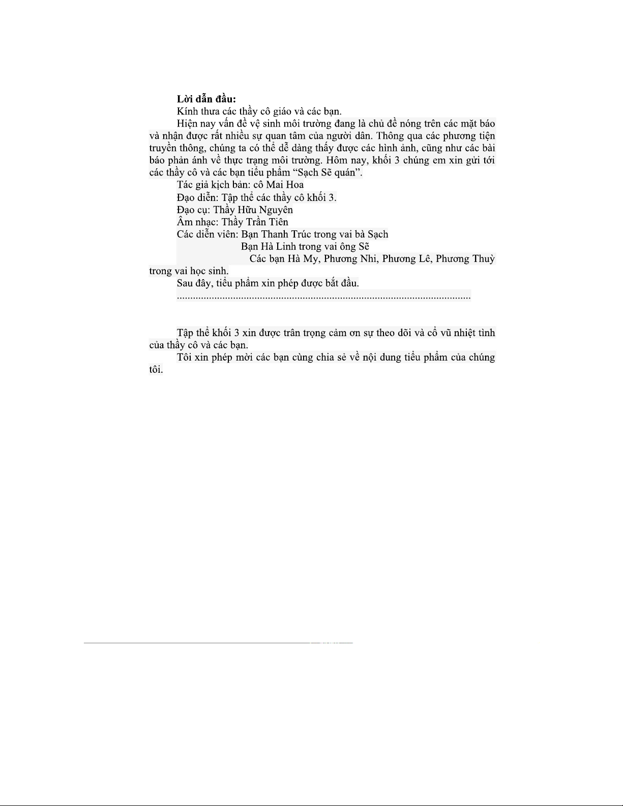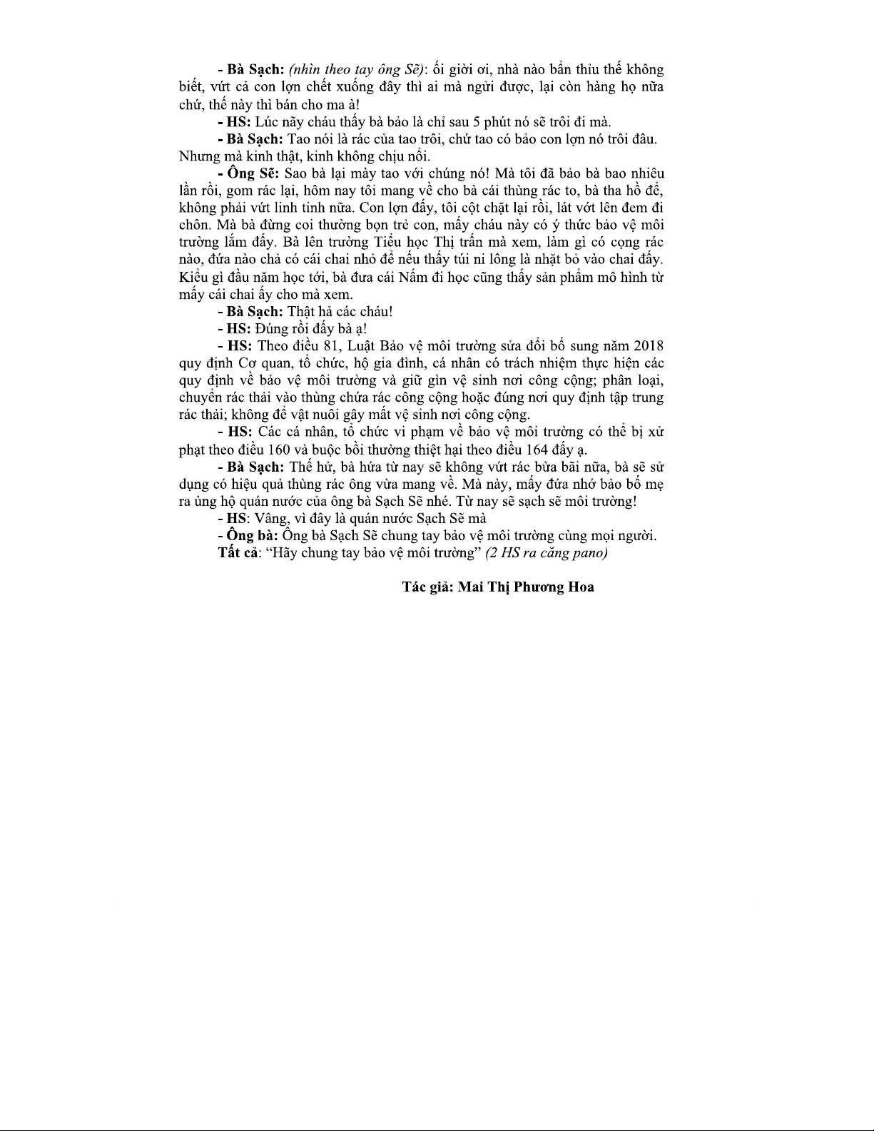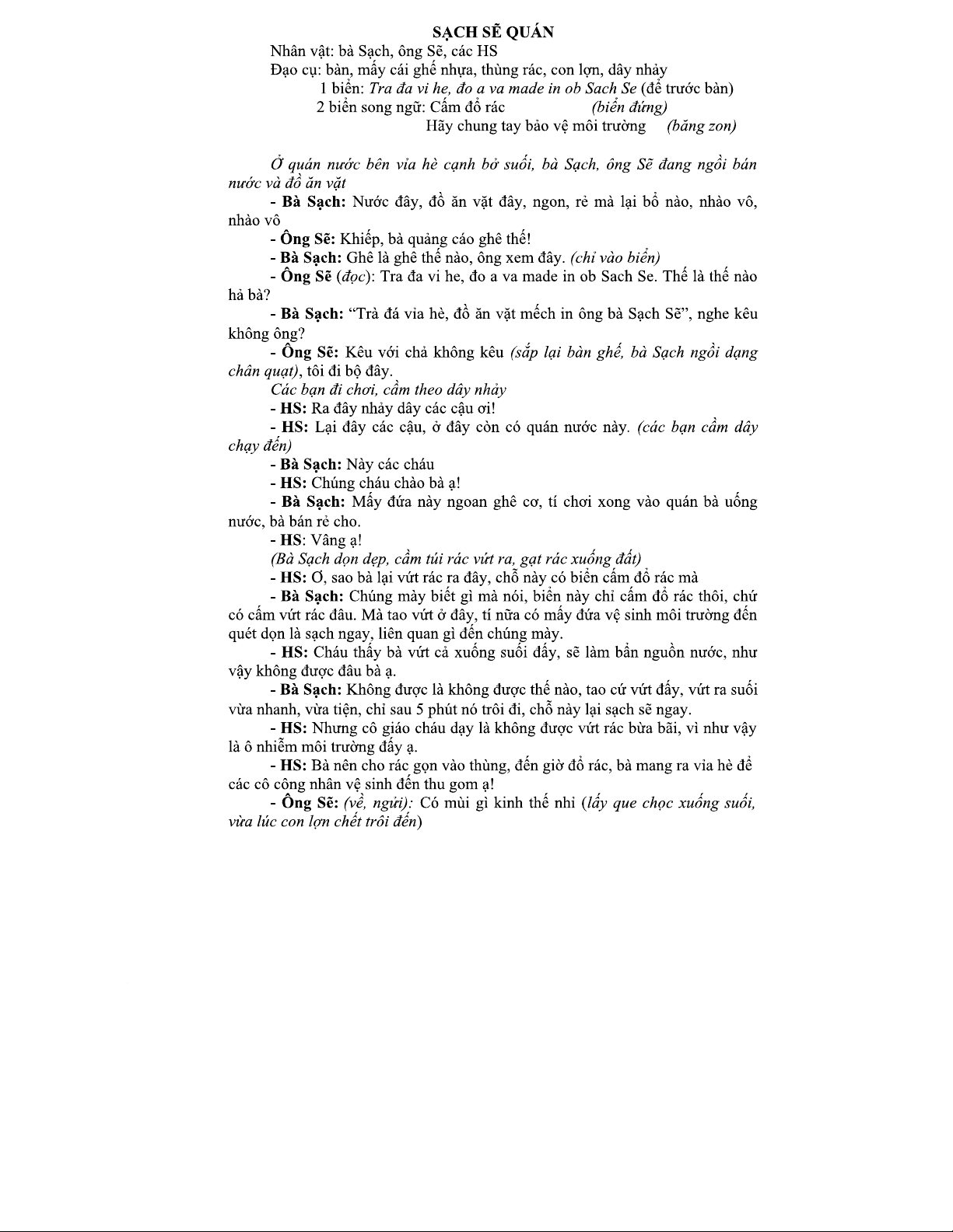 KỊCH BẢN TIỂU PHẨM Tuyên TRUYỀN BẢO VỆ MÔI TRƯỜNG - KHỐI 3
