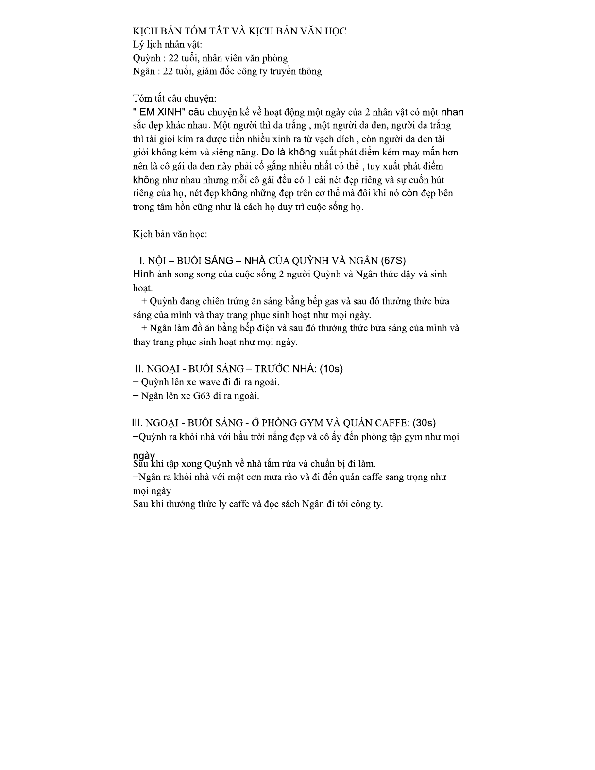 KỊCH BẢN TÓM TẮT VĂN HỌC NHÓM 5: EM XINH & NHAN SẮC ĐÁNG CHÚ Ý