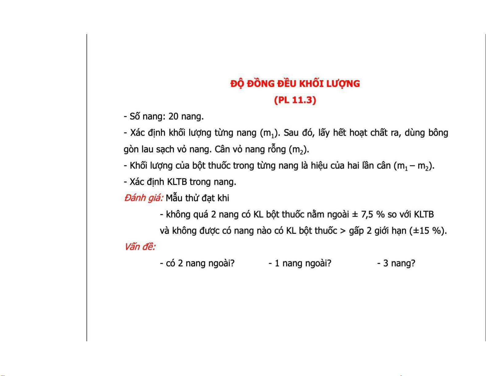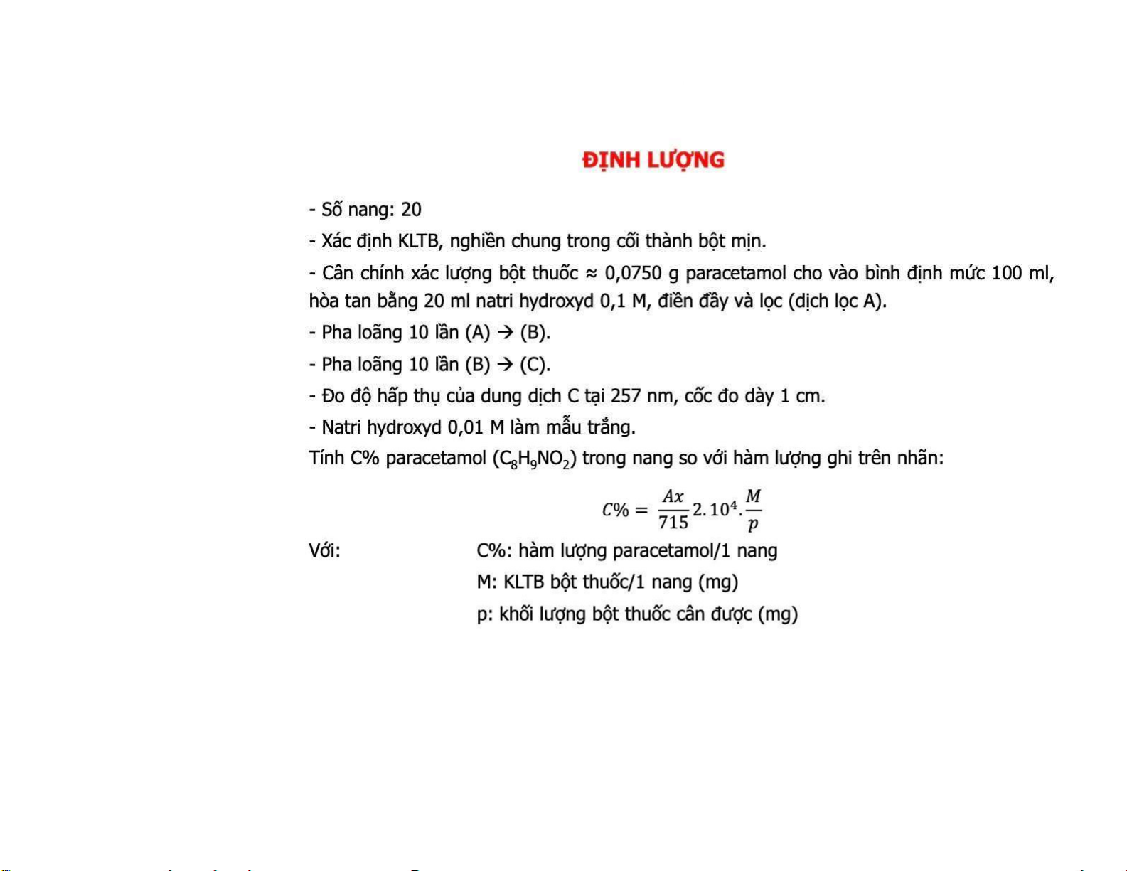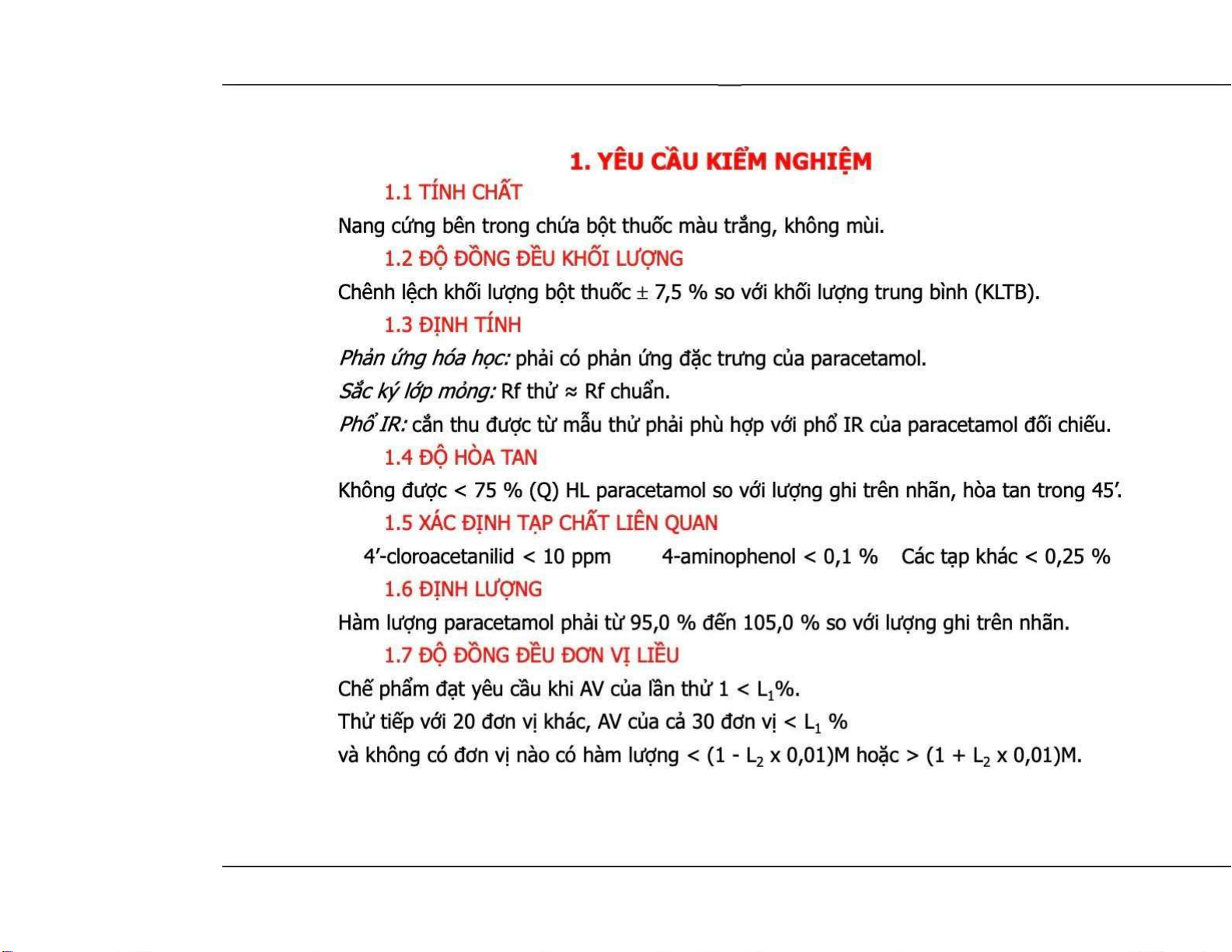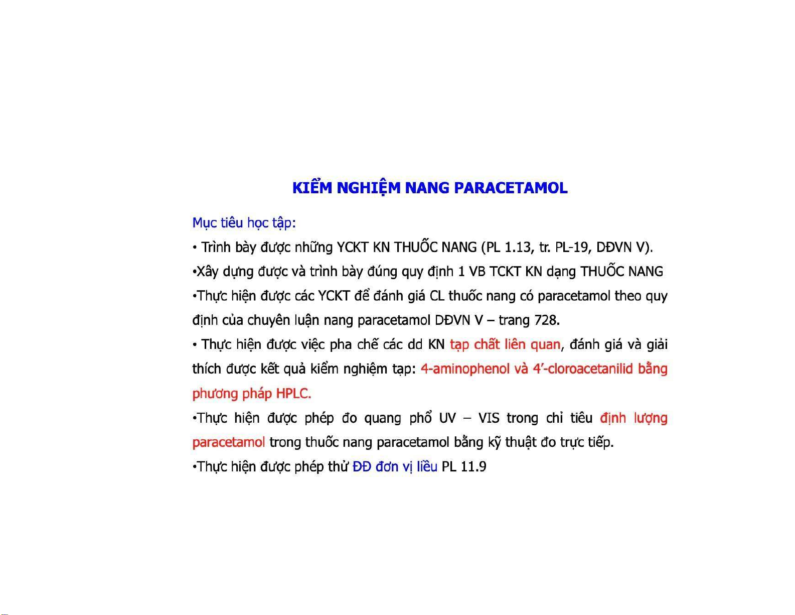Trình bày những YCKT KN THUỐC NANG (PL 1.13, tr. PL-19, DĐVN V). Xây dựng được và trình bày đúng quy định 1 VB TCKT KN dạng THUỐC NANG. Kiểm Nghiệm Nang Paracetamol | Đại Học Y Dược Huế. Tài liệu được sưu tầm gồm 11 trang, giúp bạn tham khảo, ôn tập và đạt kết quả cao!