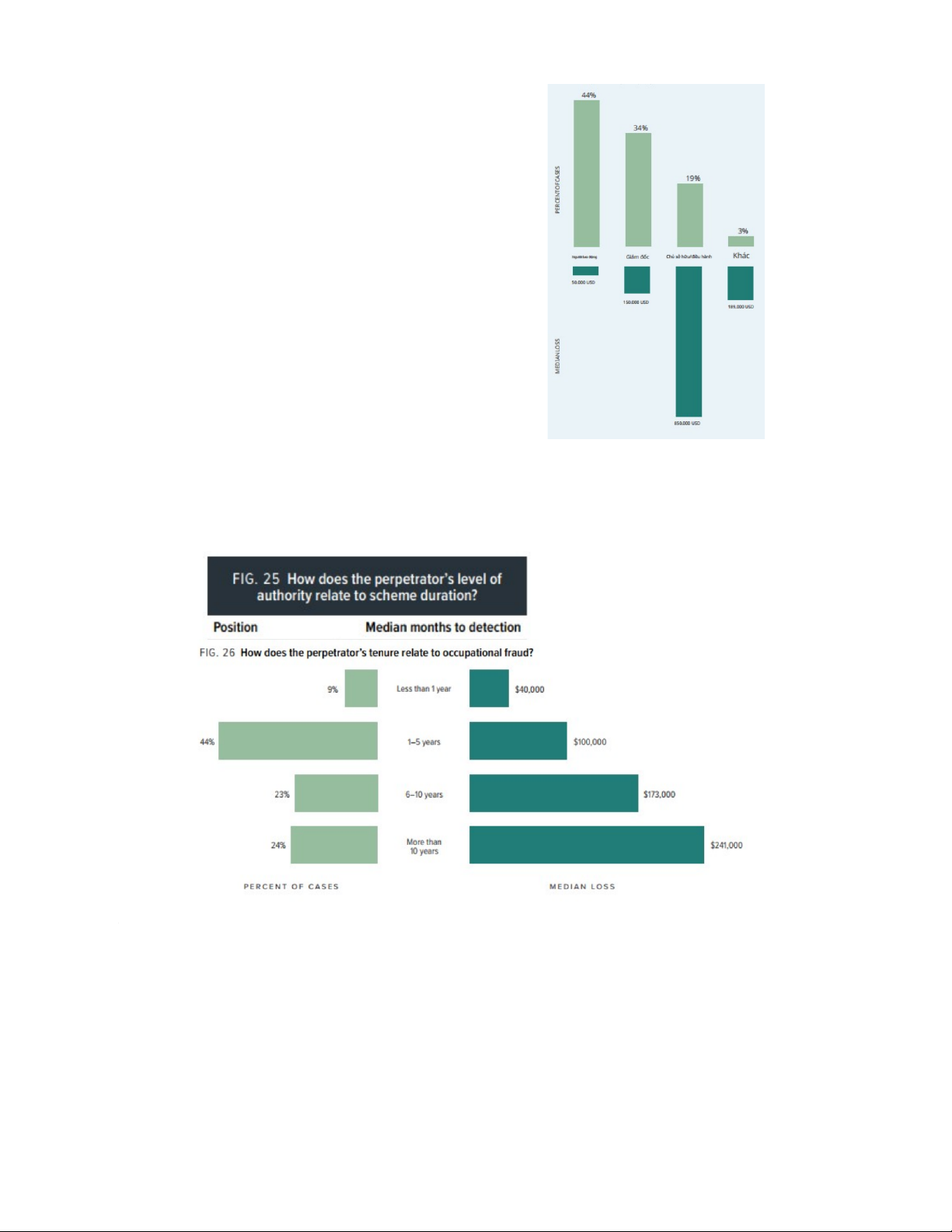 Kế toán và vận hành: 14% số vụ gian lận. Tổn thất trung bình: Kế toán: 212.000 USD. Vận hành: 88.000 USD.