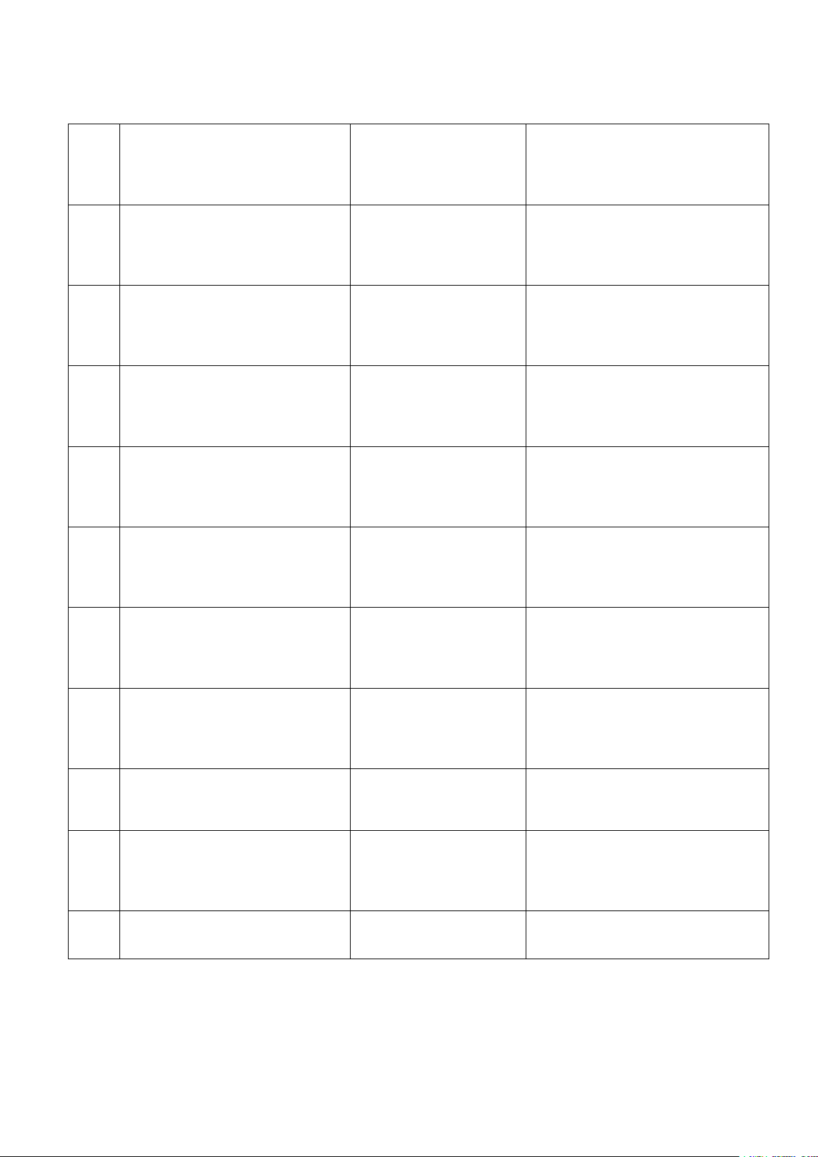 Công việc thực hiện Nguyễn Thị Trang 21D150217 52 Chương 1 (4) Nguyễn Thị Trang 21D270139 53 TT Phạm Huyền Trang 21D150278 54 Chương 2 55 Phạm Thu Trang 21D150158 Word Hà Xuân Tuấn 20D160045 56 PPT Phan Thị Tuyết 21D150219 57 Chương 1 (3), Chương 2 (1) 58 Nguyễn Thị Tú 21D150013 Chương 3 59 Trịnh Thị Uyên 21D150160 Chương 1 (1,2) 21D270142 60 Trần Trịnh Quốc Yến TT 61 Vũ Thị Hải Yến 21D150161 Chương 2