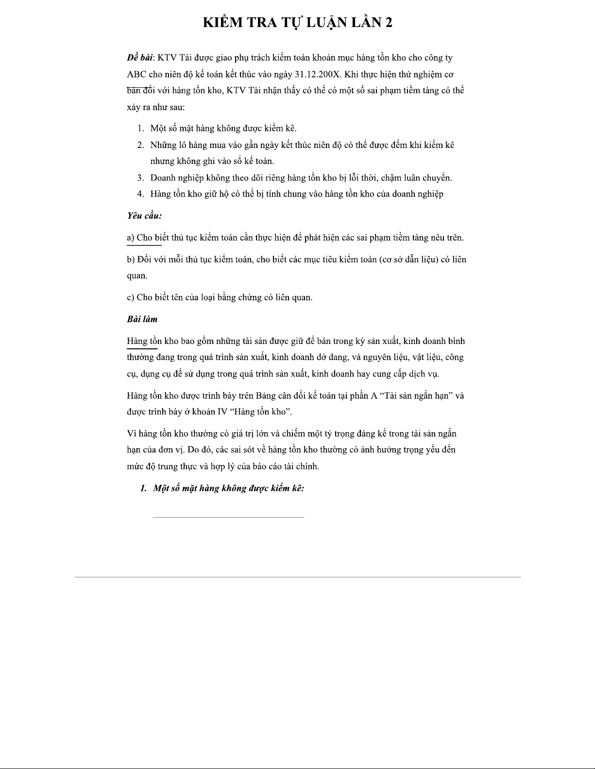 Kiểm Toán Nâng Cao - Bài Tập Kiểm Tra Tự Luận Lần 2
