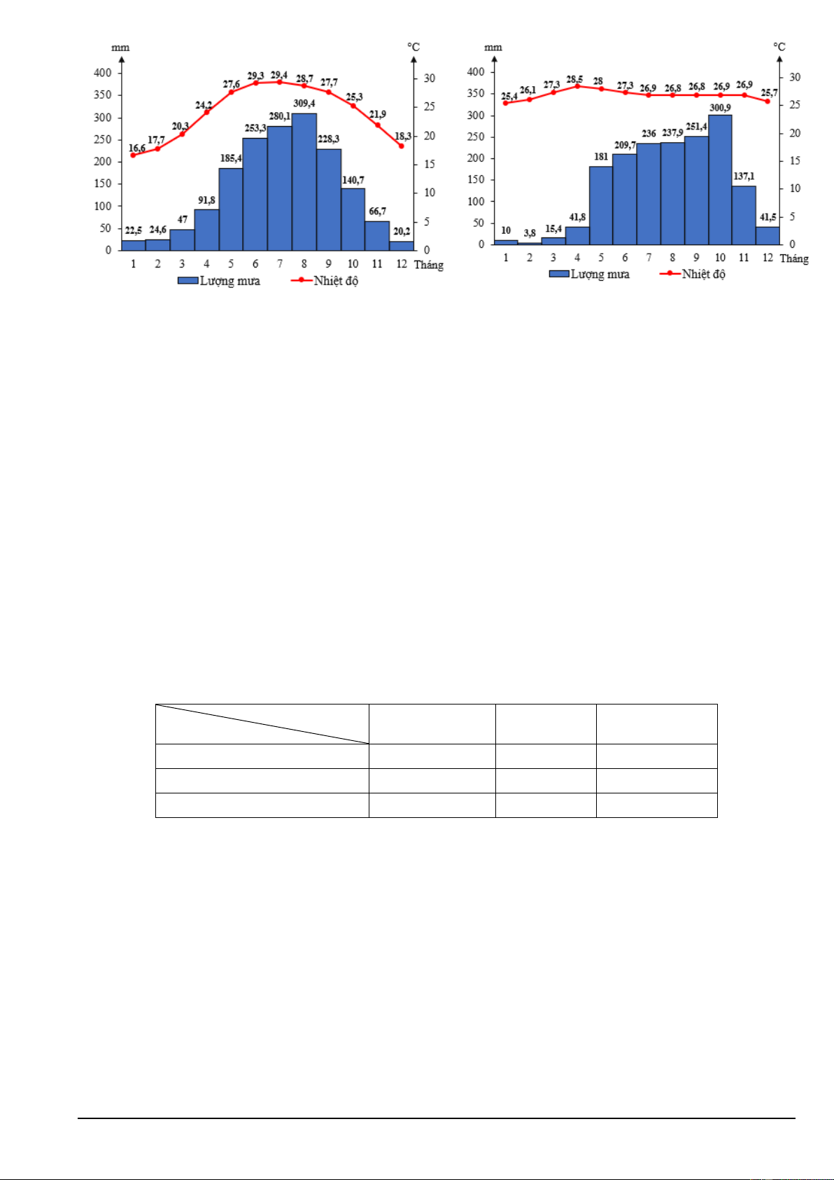 Nhiệt độ (0C) 16,5 18,3 21,0 23,8 25,5 26,3 25,9 25,6 24,9 22,9 19,7 16,5