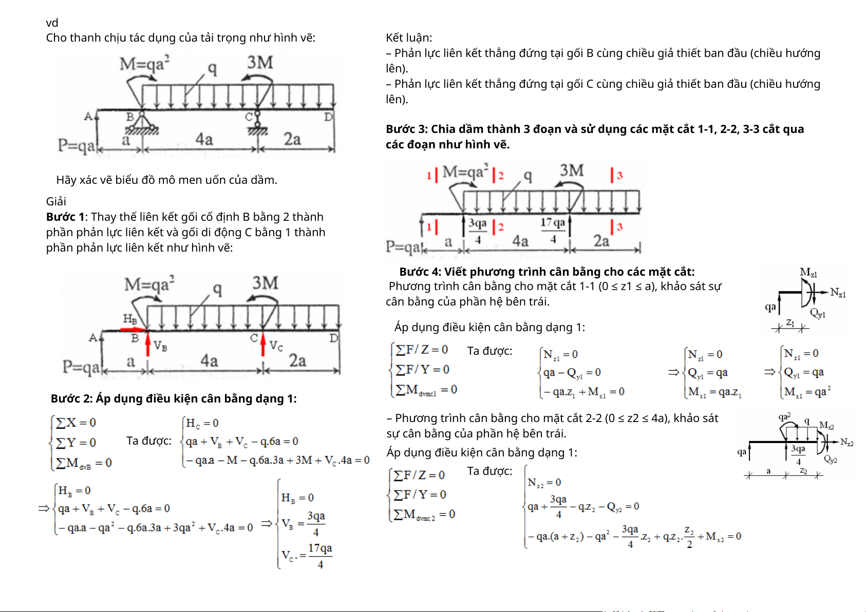 – Bước 2: Phân đoạn thanh sao cho biểu thức của các thành phần ứng lực trên từng đoạn là liên tục. (Thông thường là các đoạn có sự