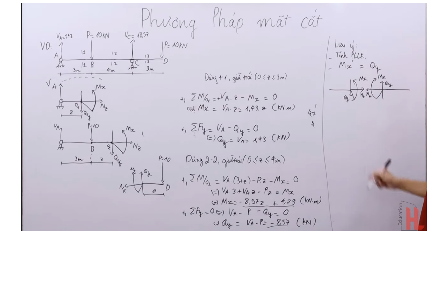 Bước 4: Viết phương trình cân bằng cho các mặt cắt: