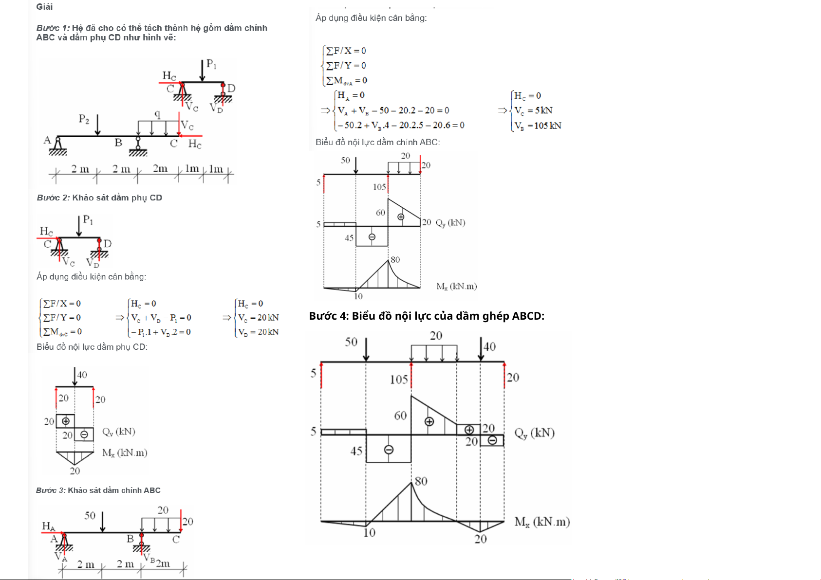 – Bước 2: Vẽ biểu đồ nội lực trên các dầm phụ và xác định phản lực liên kết trên