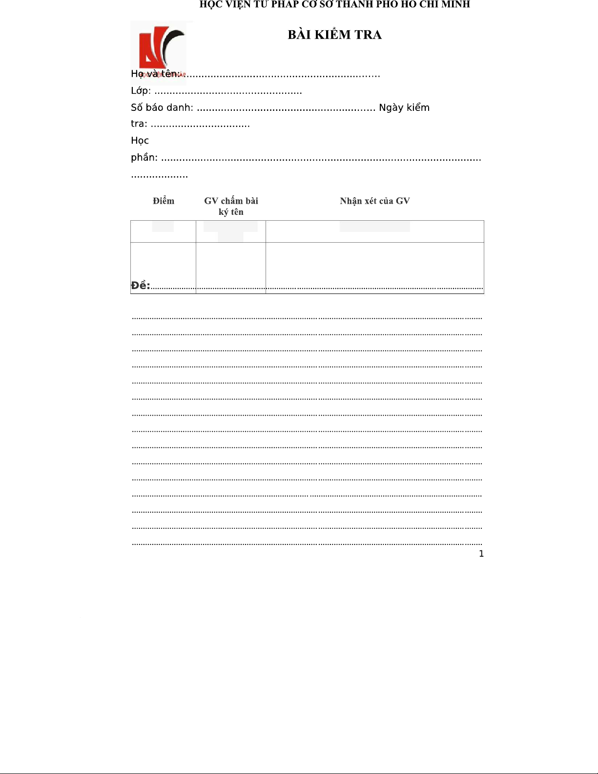 KIỂM TRA GIÁO VIÊN - Mẫu giấy kiểm tra Học phần Tư pháp 2023