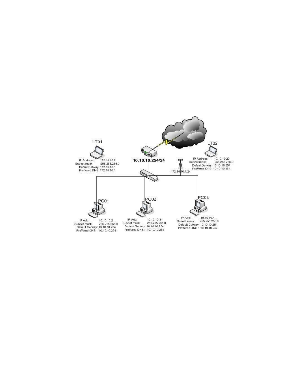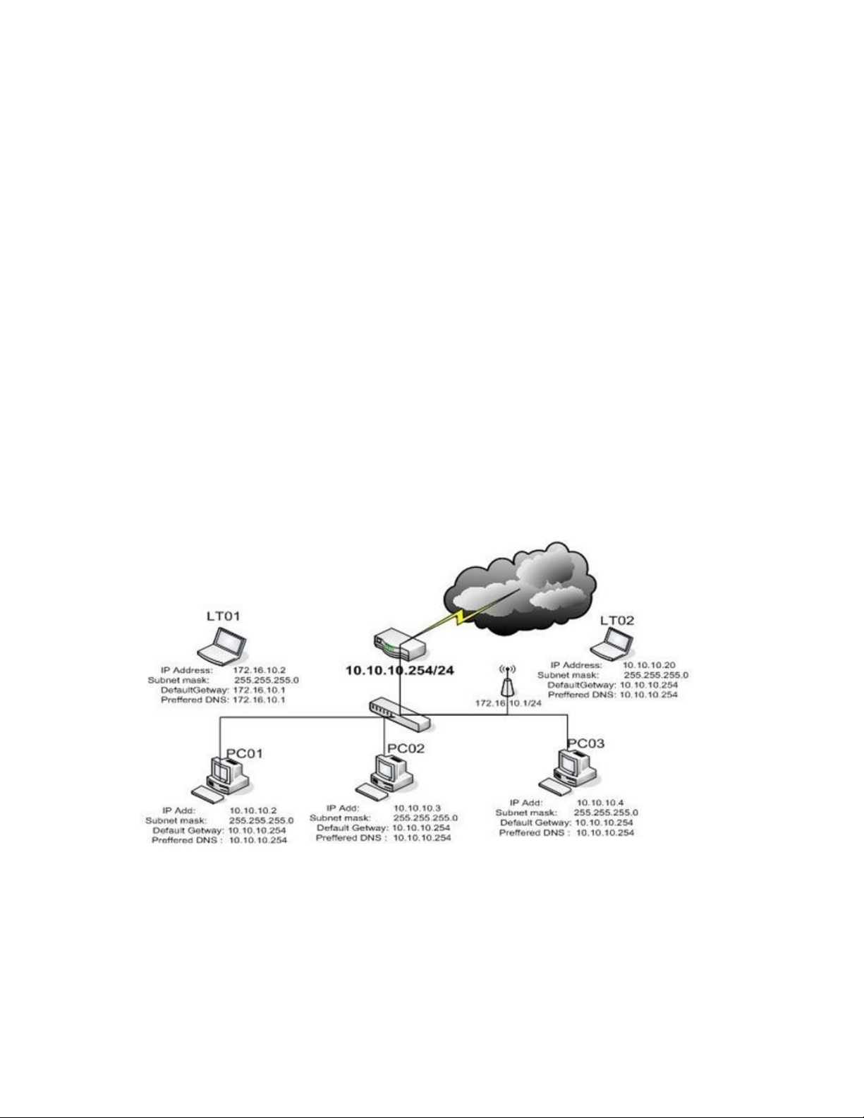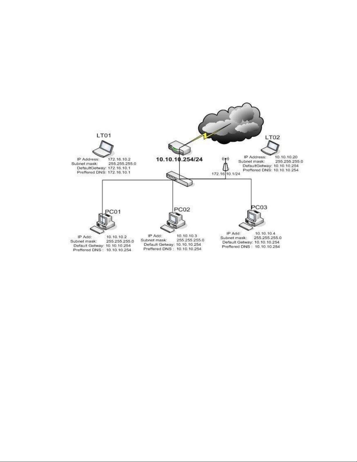 2. Trong mô hình sau Default Getway của các PC là IP address nào để chúng giao tiếp được internet A. 210.245.31.31 B. 10.10.10.254