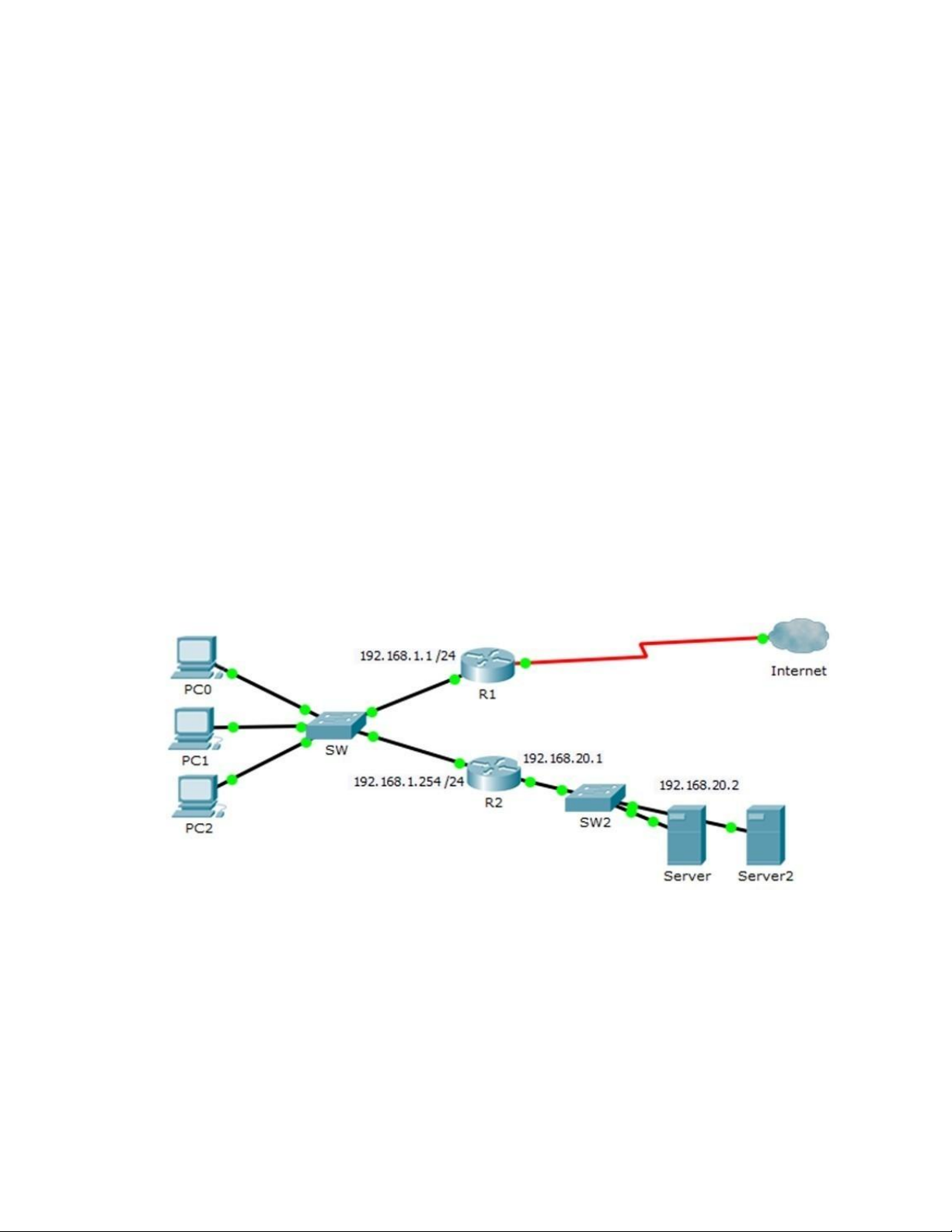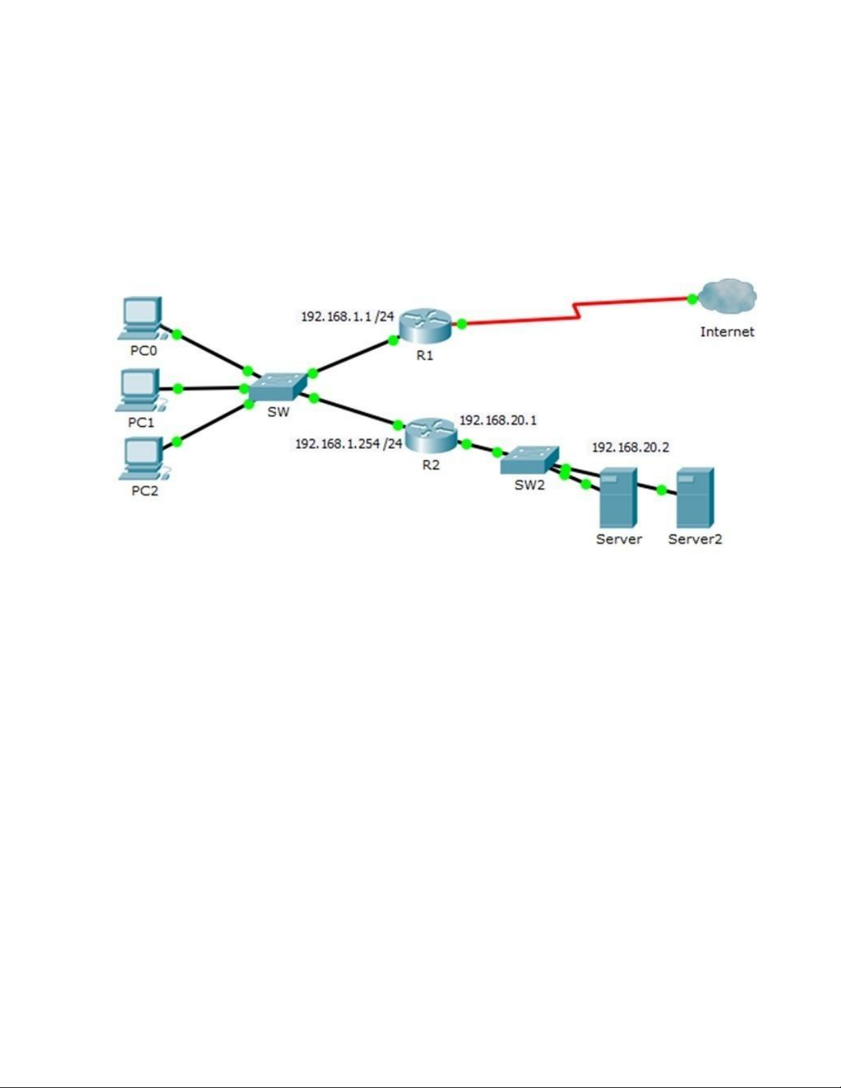 Để các máy Server giao tiếp internet, cần khai báo Default Gateway là: A. 192.168.20.1 B. 192.168.1.254 C. 192.168.1.1 D. Không cần khai báo.