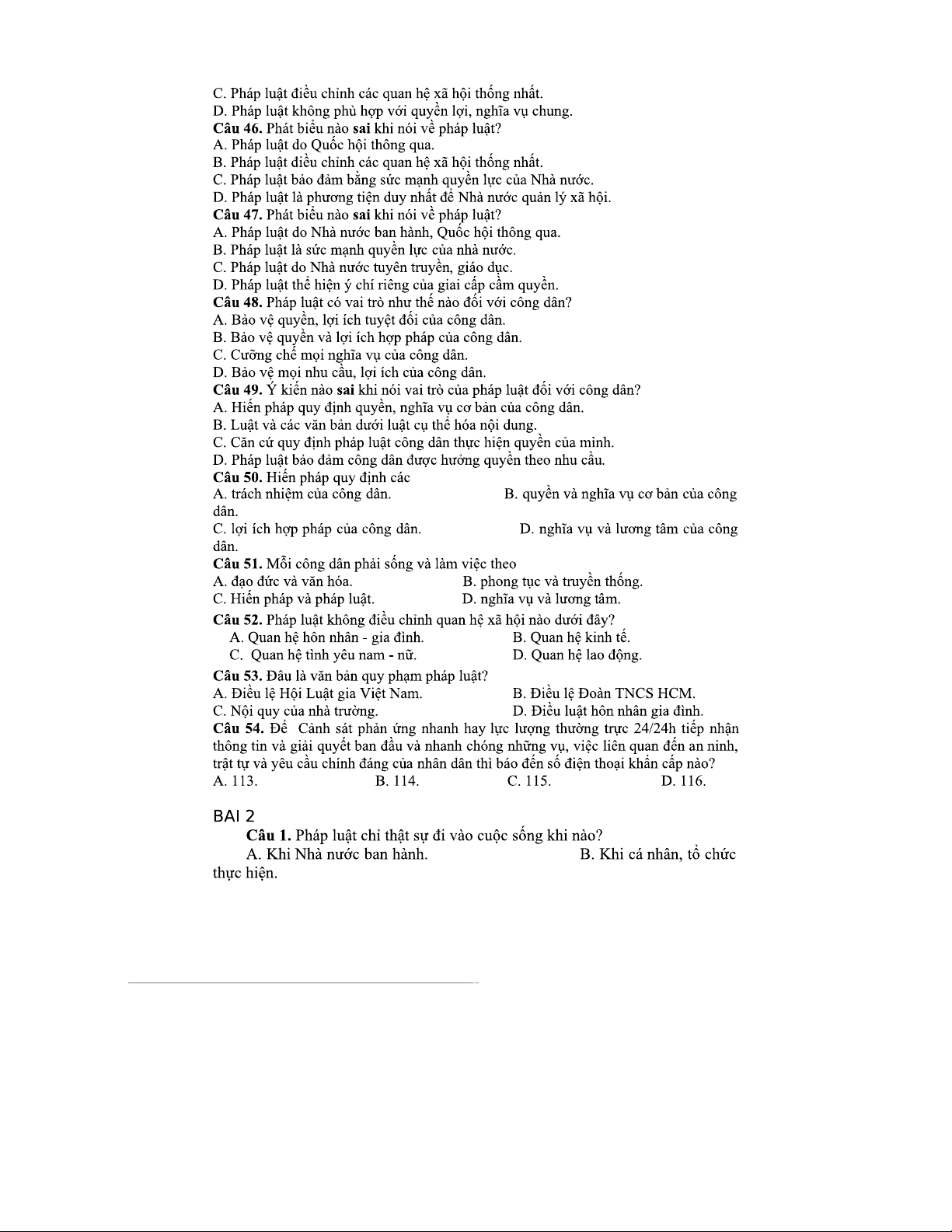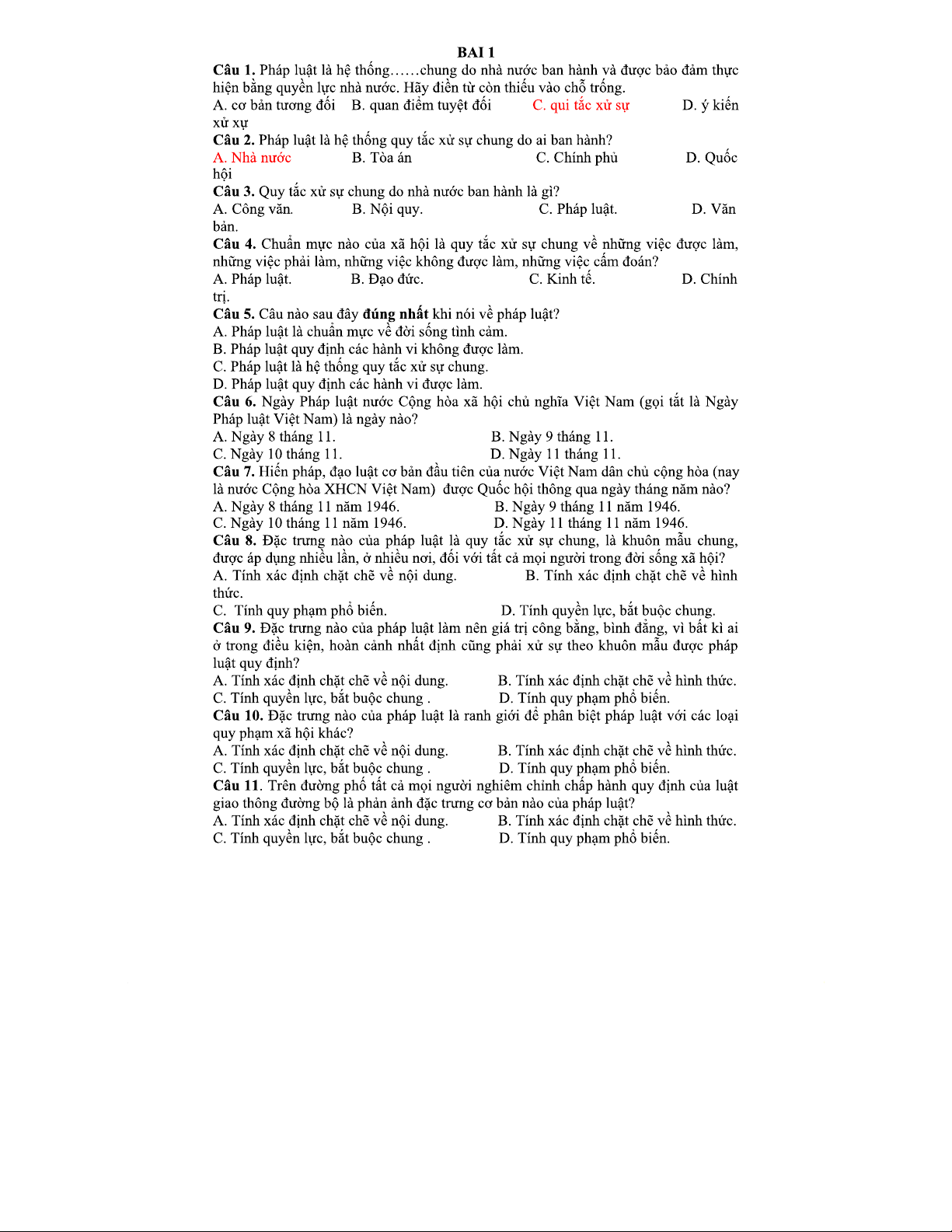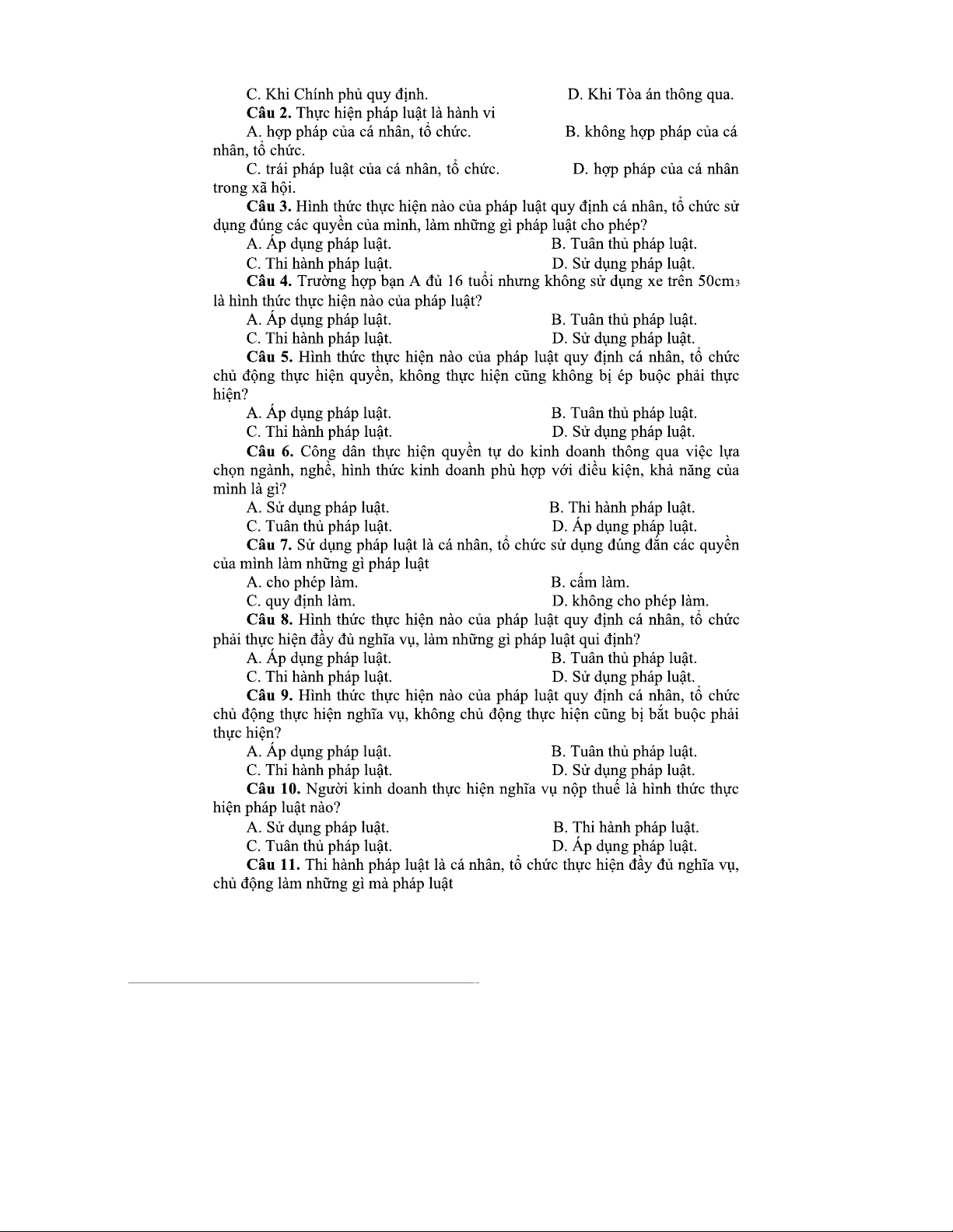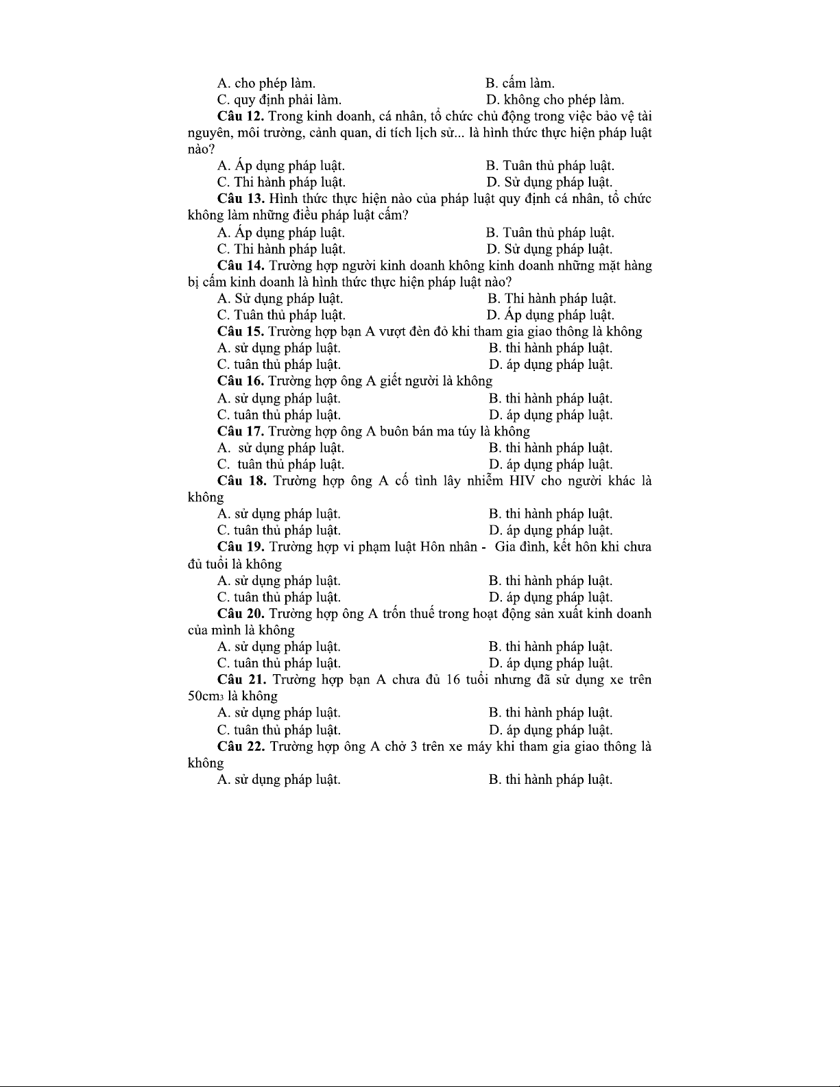 KIỂM TRA GIỮA KỲ 1 MÔN GDCD 12: CÁC CÂU HỎI THỰC HÀNH