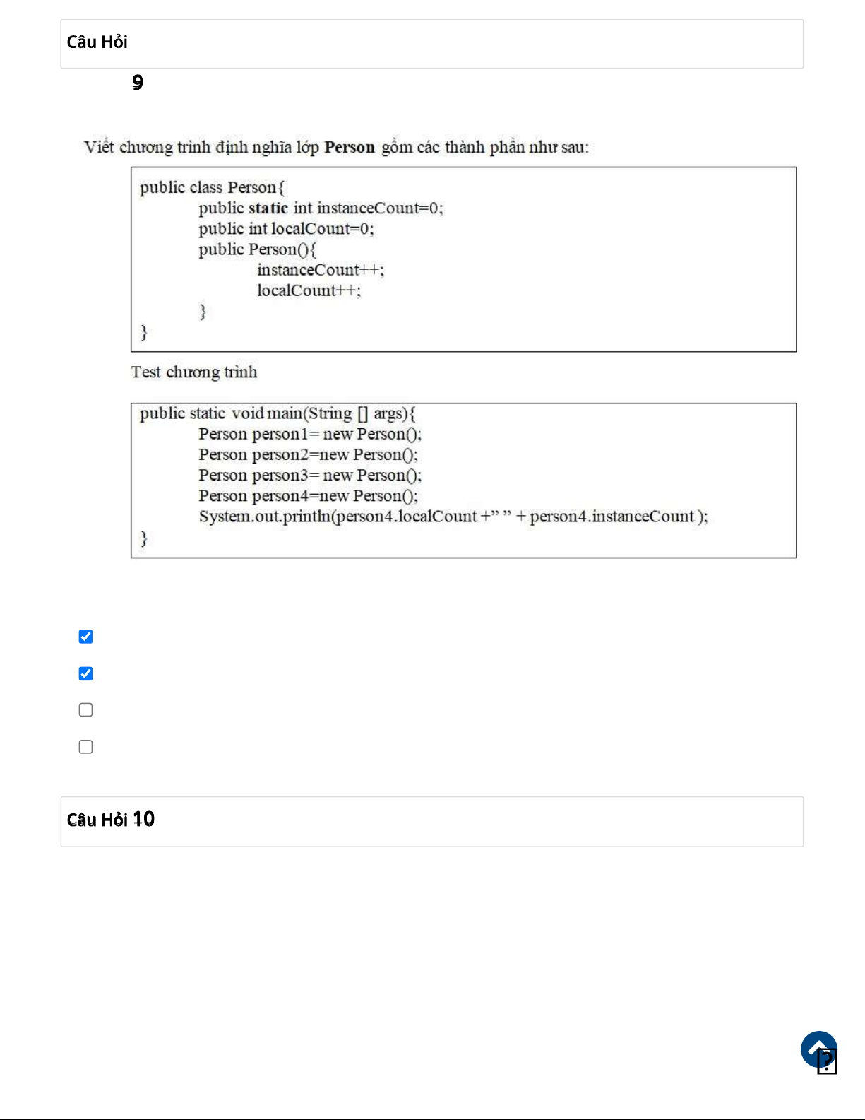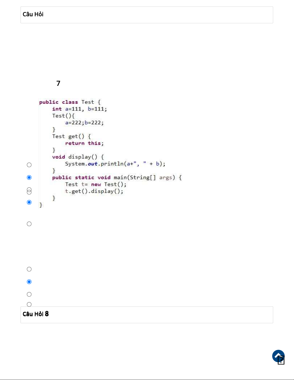Kết quả khi chạy chương trình A. Lỗi không chạy được B. 222, 222 C. 111, 111 Clear my choice