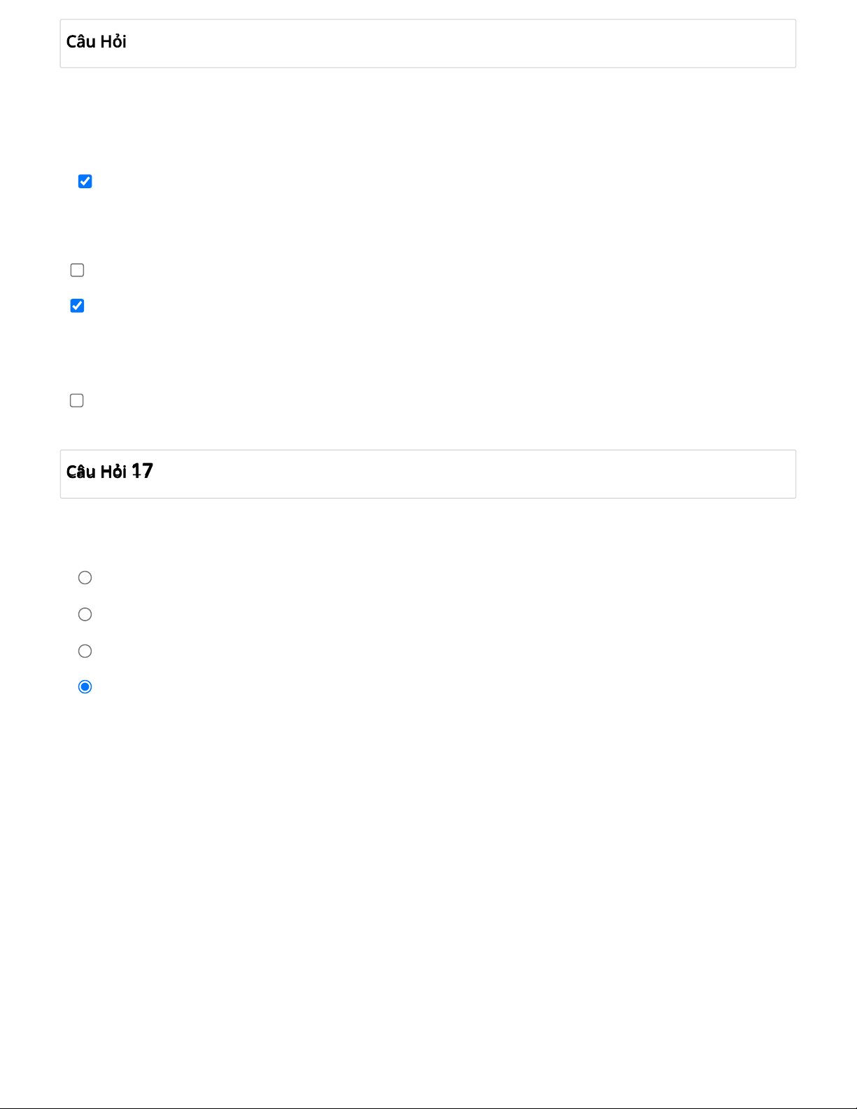 D. Đối tượng lớp C có thể được upcast lên đối tượng lớp A hoặc B lOMoAR cPSD| 58833082 Câu Hỏi 18 Chưa trả lời Clear my choice