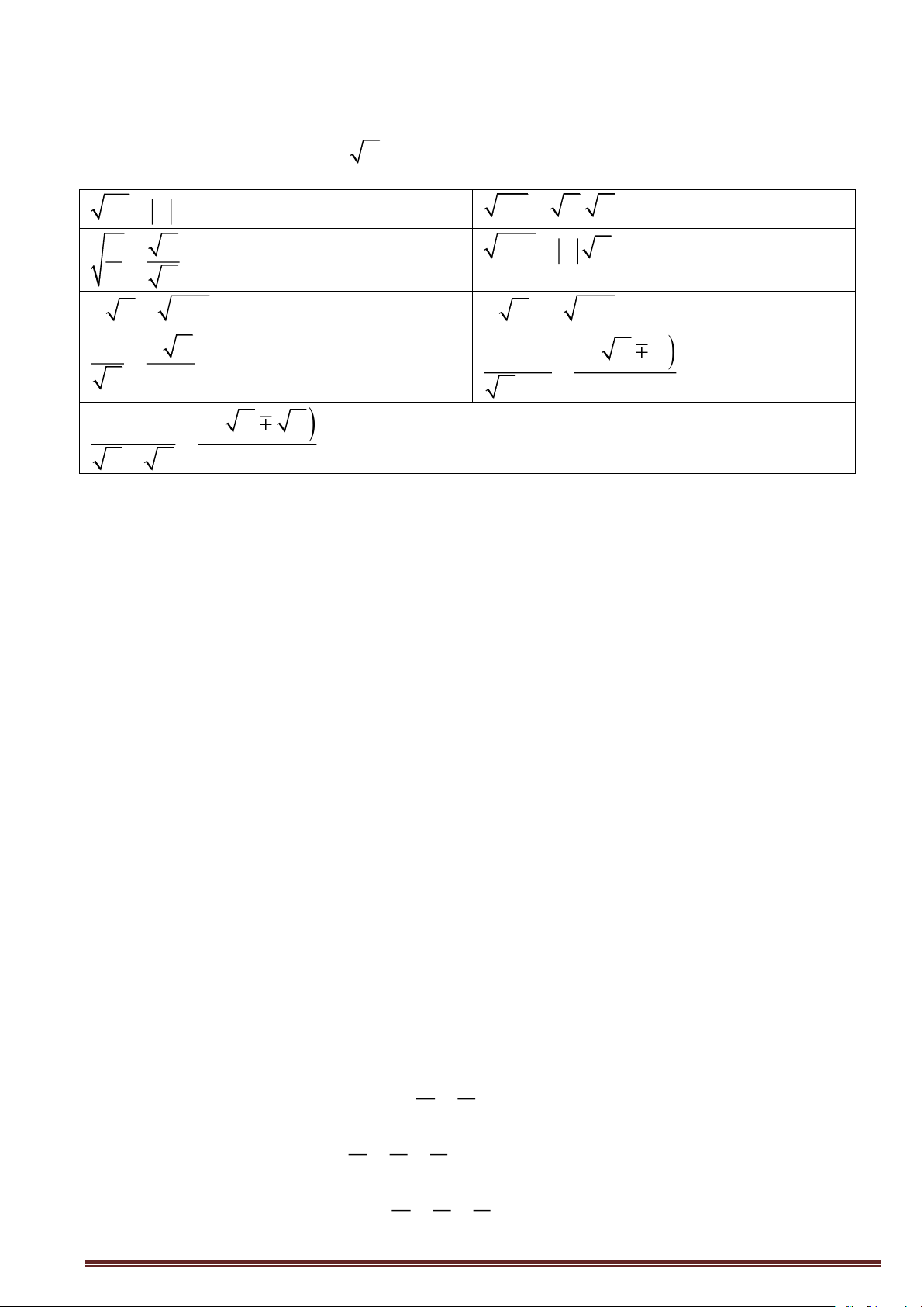 I. Tổng hợp kiến thức Toán đại số lớp 9