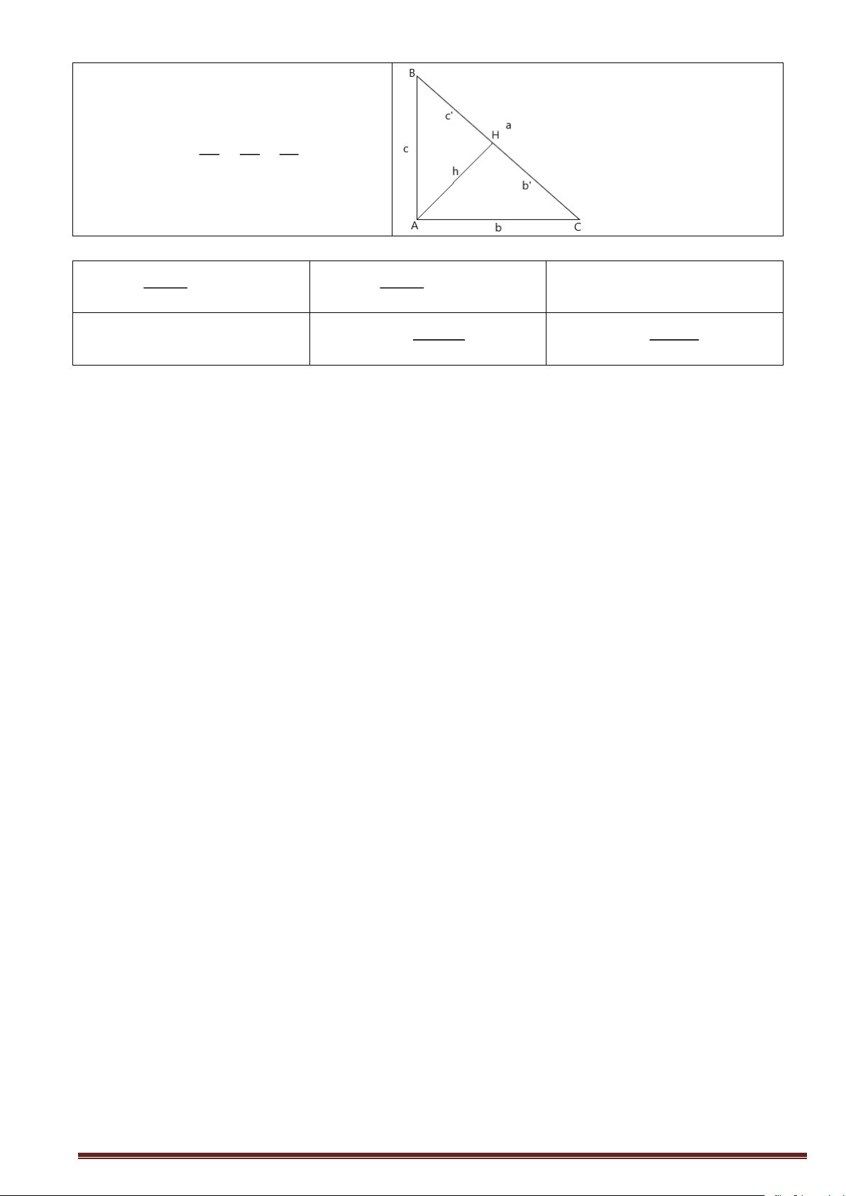 * Hệ thức về cạnh và góc trong tam giác vuông: b = a.sinB = a.cosC b = c.cotB = c.cotC c = a.sinC = a.cosB c = b.tanC = b.cotB