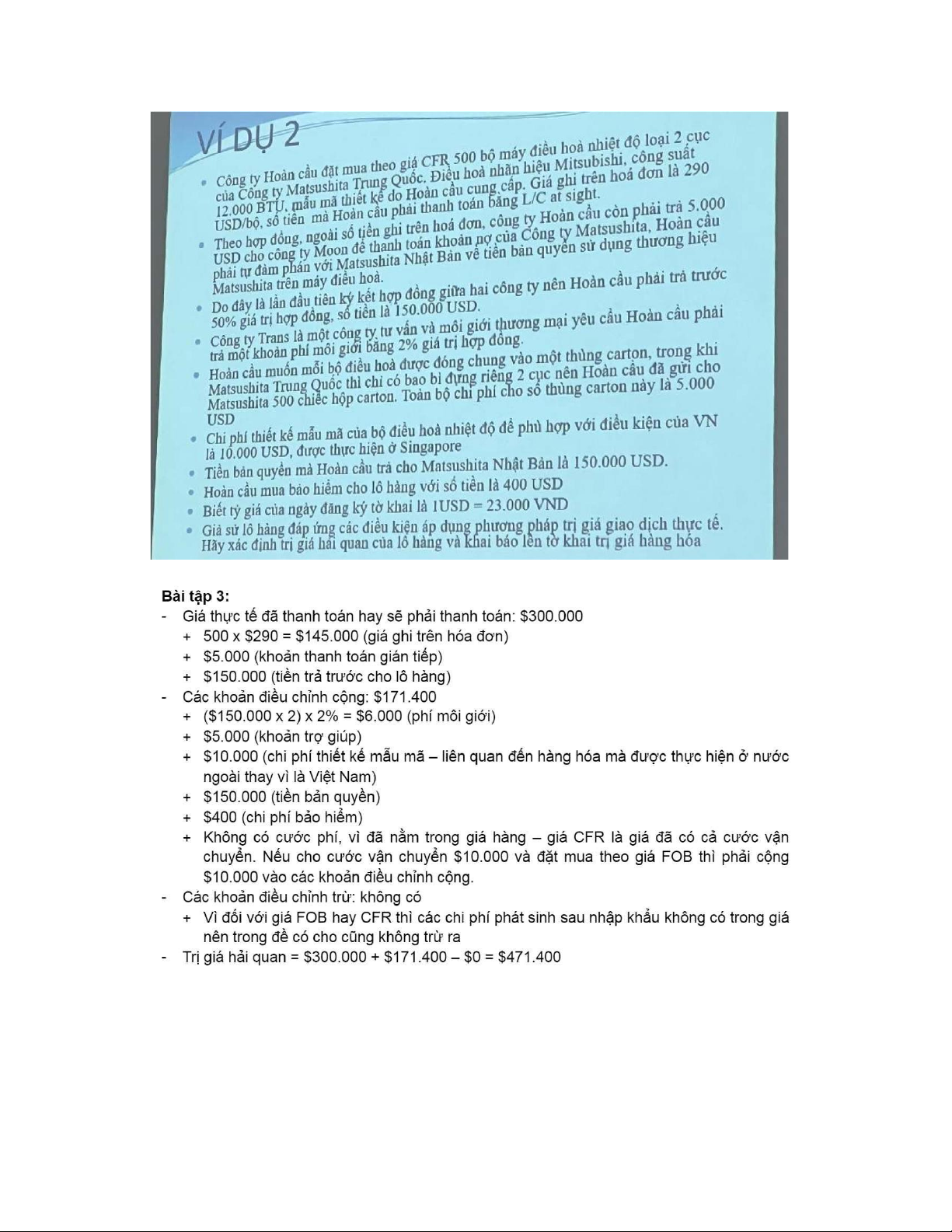 Hãy xác định trị giá hải quan cho cả 2 lô hàng và khai báo lên 2 tờ khai trị giá. Biết