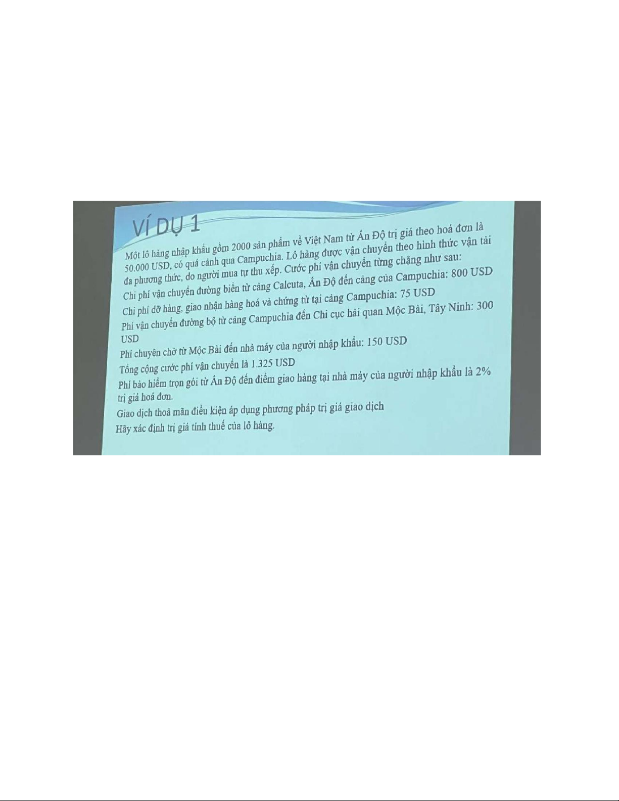 1/ Giá tính thuế XK/NK: là giá tính tại cửa khẩu nhập không tính phí vận chuyển,… - Incoterms 2010: DAF: giao tại biên giới DES: giao trên tàu
