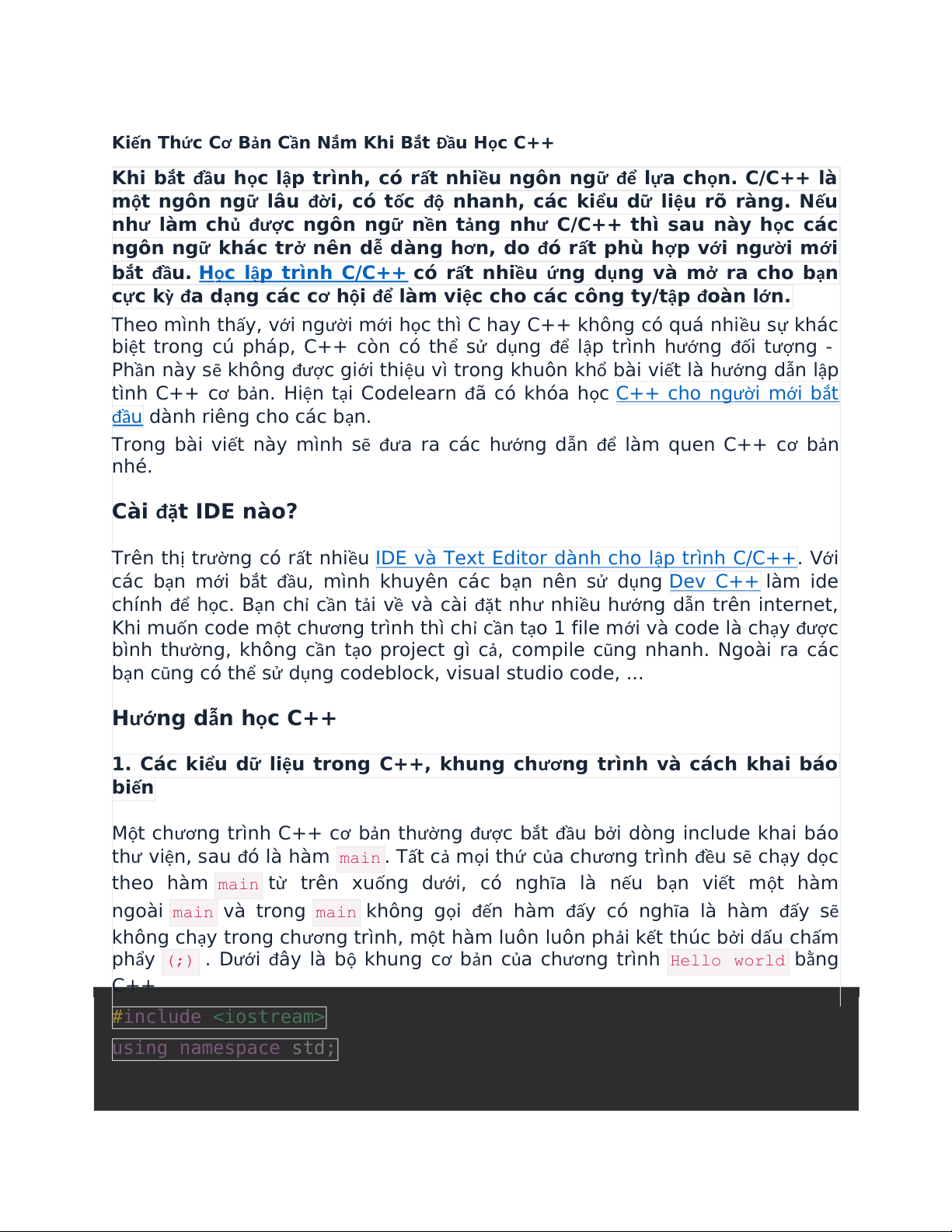 ơ bản. Hiện tại Codelearn đã có khóa học"C++ cho ng ườ i m ớ i b ắ t đầ u "dành riêng cho các bạn.