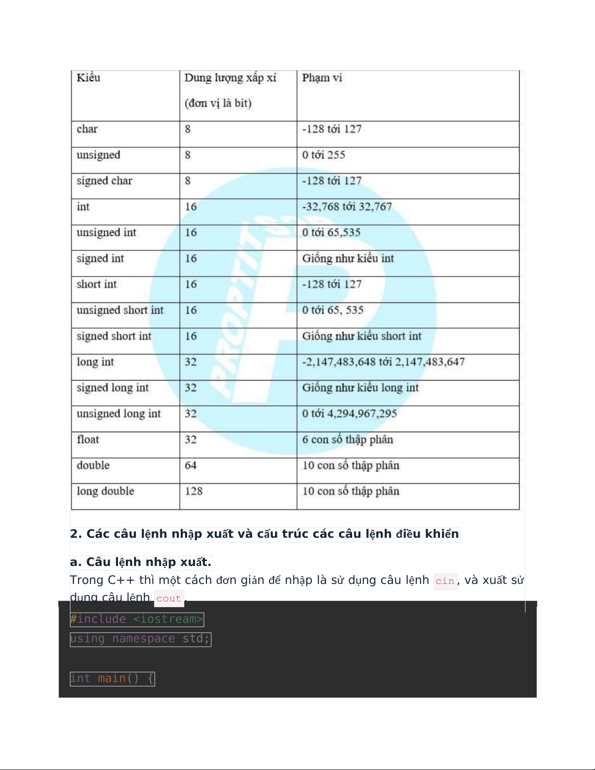 khoảng của mỗi kiểu dữ liệu. Sau khi đã làm các bài tập và hiểu rõ rồi thì có thể