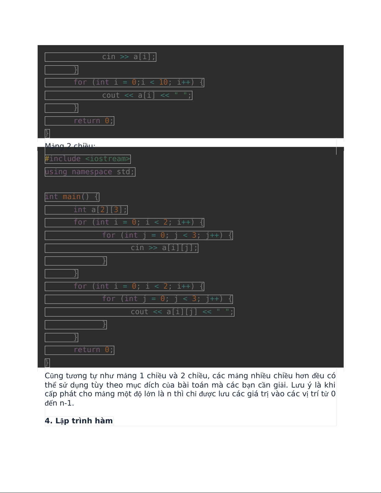 cấp phát cho mảng một độ lớn là n thì chỉ được lưu các giá trị vào các vị trí từ 0 đến n-1. 4. Lập trình hàm