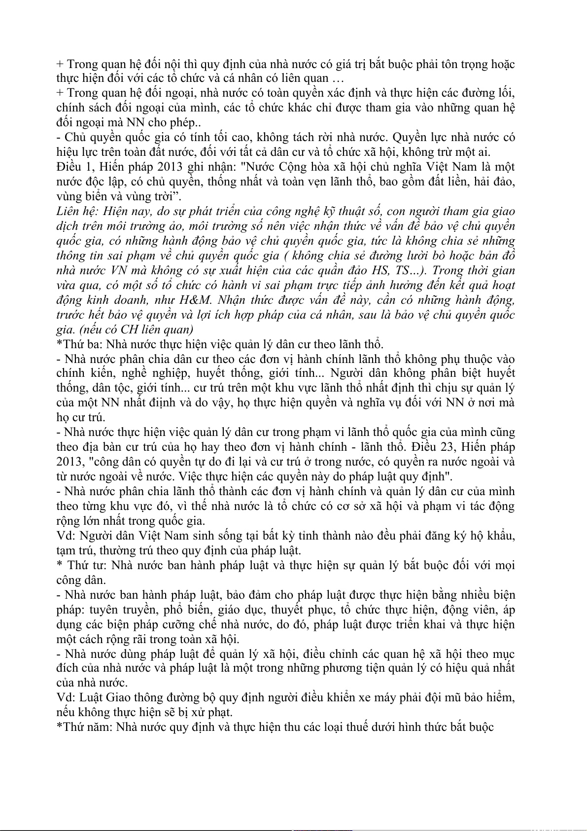 - Nhà nước thực hiện việc quản lý dân cư trong phạm vi lãnh thổ quốc gia của mình cũng