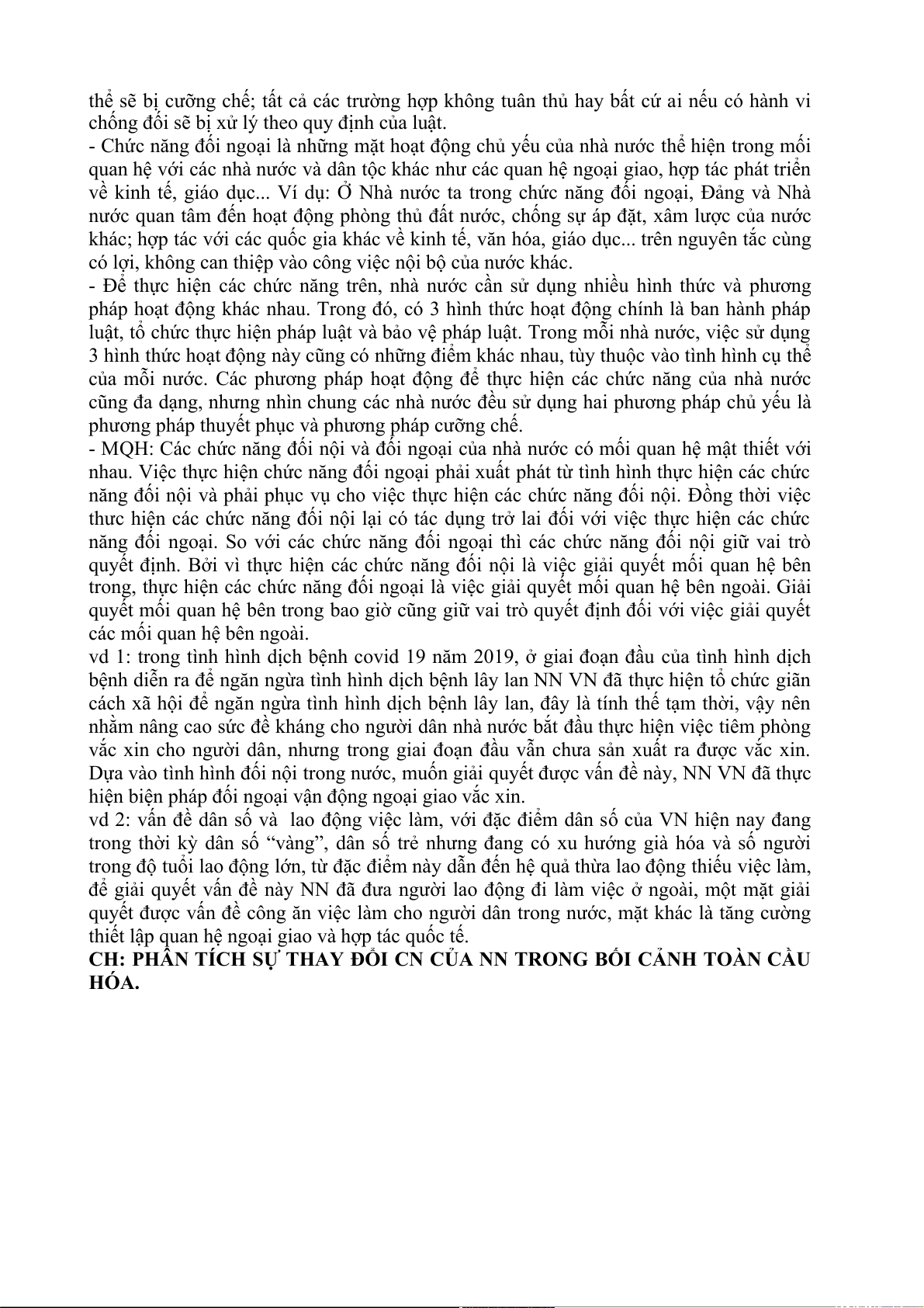 - MQH: Các chức năng đối nội và đối ngoại của nhà nước có mối quan hệ mật thiết với