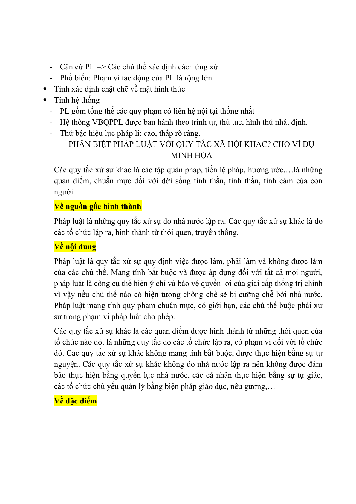 PHÂN BIỆT PHÁP LUẬT VỚI QUY TẮC XÃ HỘI KHÁC? CHO VÍ DỤ MINH HỌA